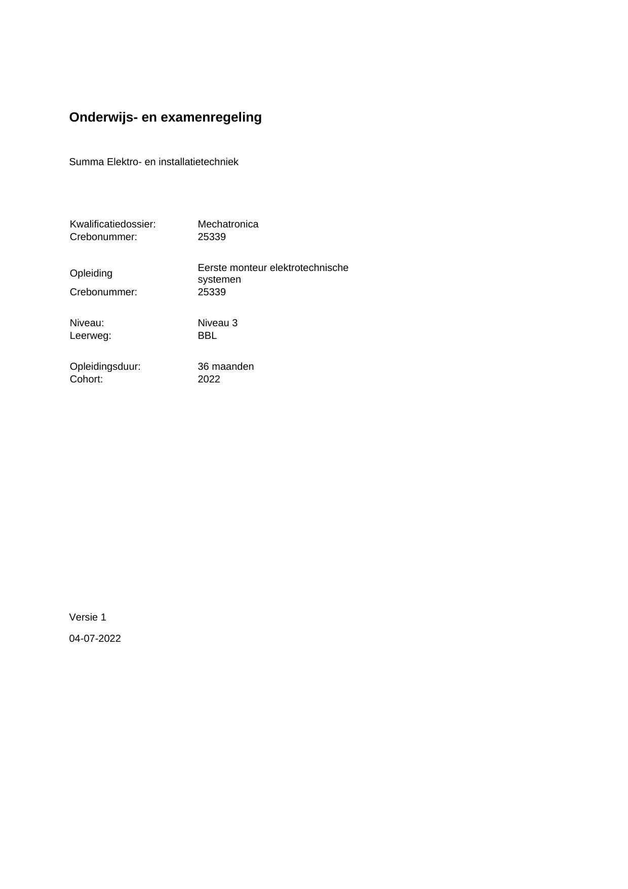 Eerste monteur elektrotechnische systemen 25339BBL36.01 in cohort 2022-2023