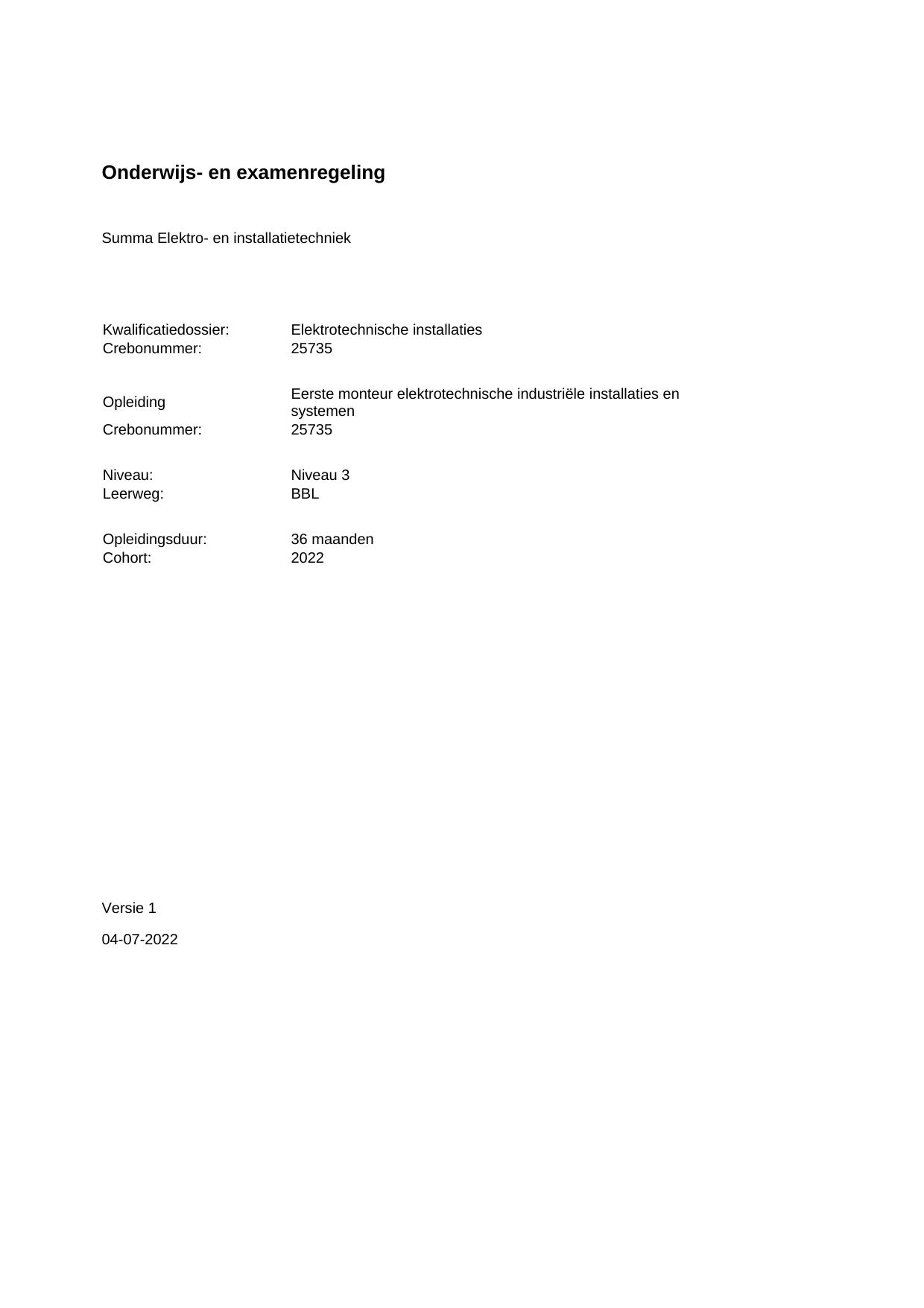 Eerste monteur elektrotechnische industriële installaties en systemen 25735BOL36.01 in cohort 2022-2023