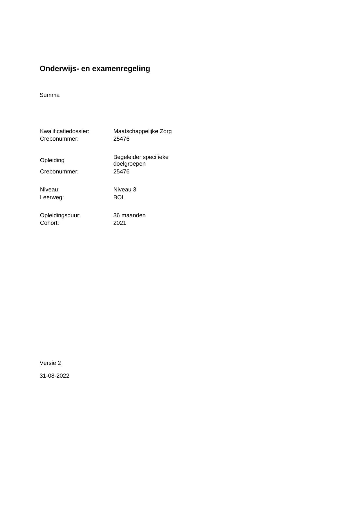 Begeleider specifieke doelgroepen 25476BOL36.02 in cohort 2021-2022