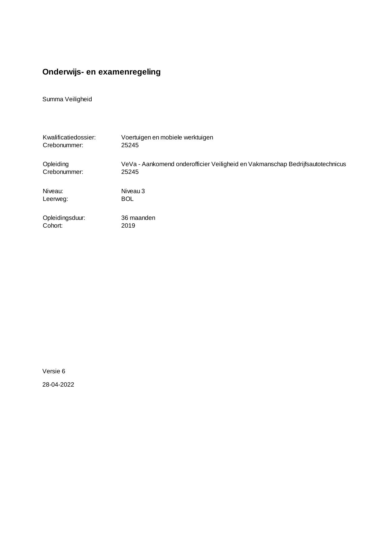 VeVa - Aankomend onderofficier Veiligheid en Vakmanschap Bedrijfsautotechnicus 25245BOL36.02 in cohort 2019-2020