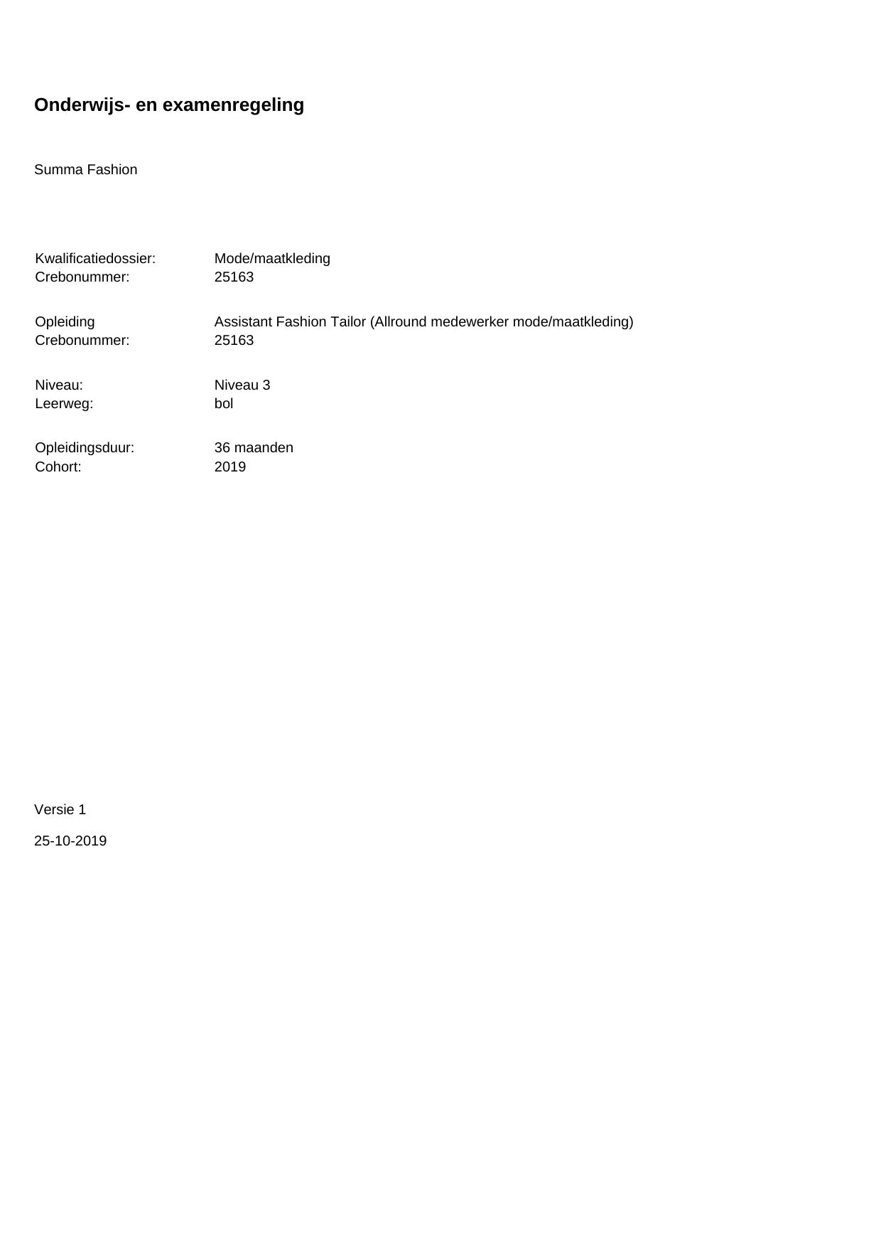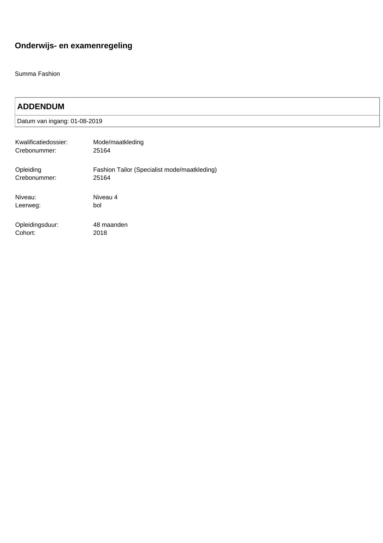 Fashion Tailor (Specialist mode/maatkleding) 25164BOL48.01 in cohort 2018-2019