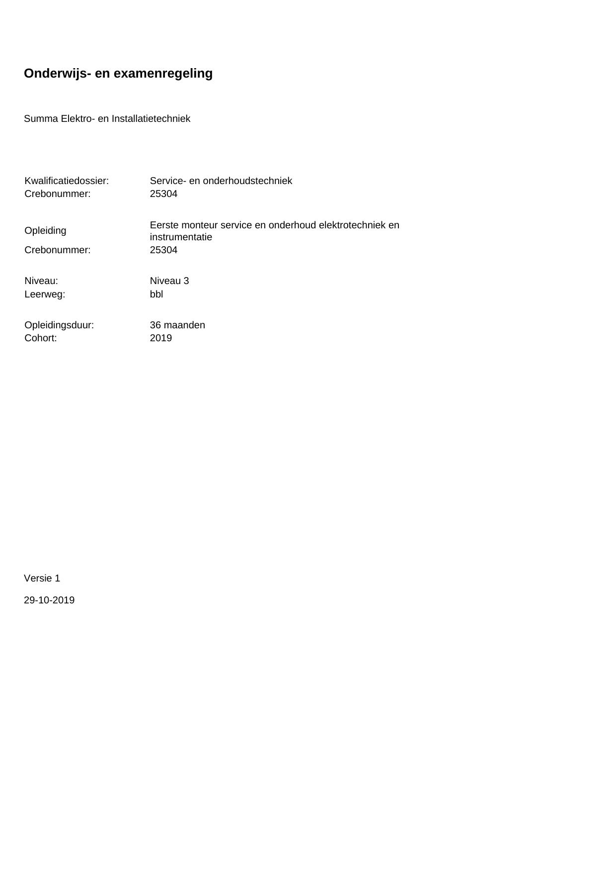 Eerste monteur service en onderhoud elektrotechniek en instrumentatie 25304BBL36.01 in cohort 2019-2020