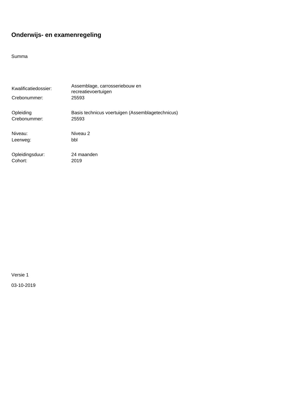 Basis technicus voertuigen (Assemblagetechnicus) 25593BBL24.01 in cohort 2019-2020