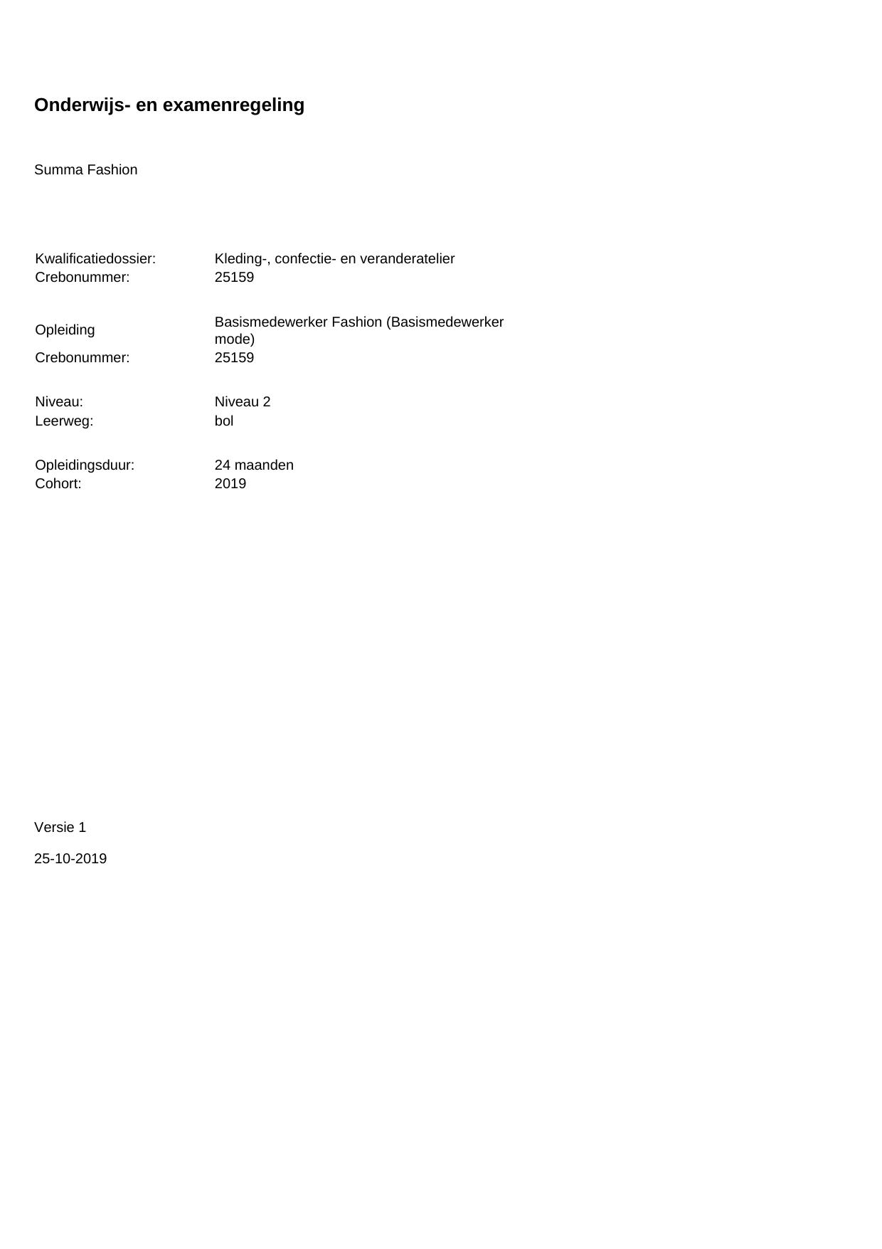 Basismedewerker Fashion (Basismedewerker mode) 25159BOL24.01 in cohort 2019-2020