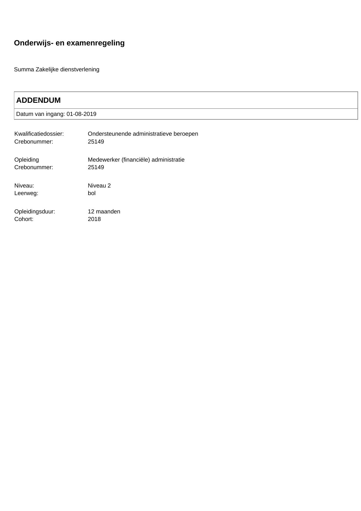 Medewerker (financiële) administratie 25149BOL12.02 in cohort 2018-2019