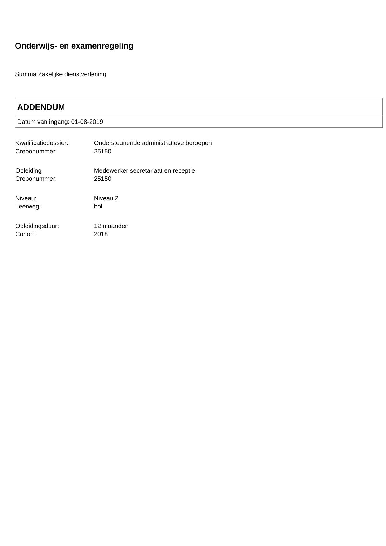 Medewerker secretariaat en receptie 25150BOL12.02 in cohort 2018-2019