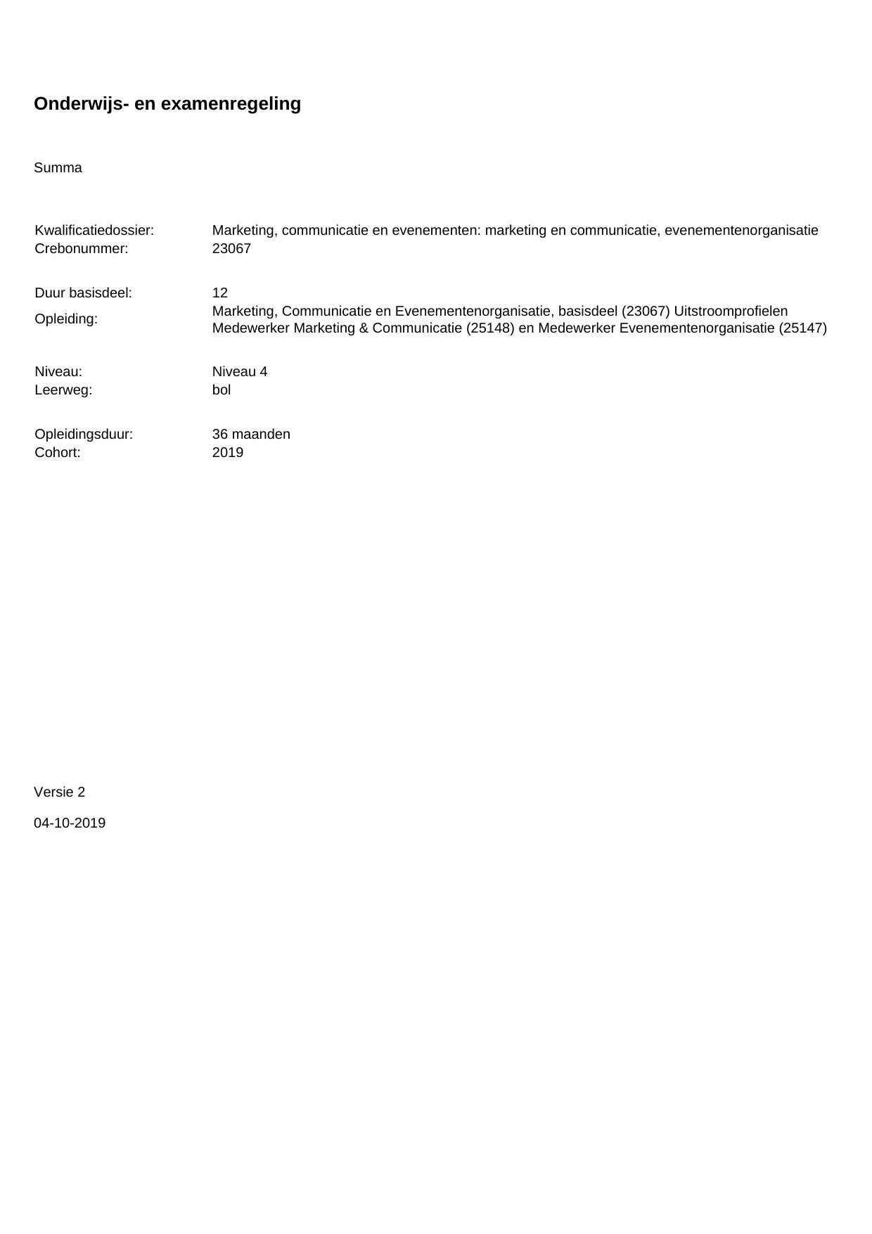Marketing, communicatie en evenementen: marketing en communicatie, evenementenorganisatie 23067BOL36.01 in cohort 2019-2020