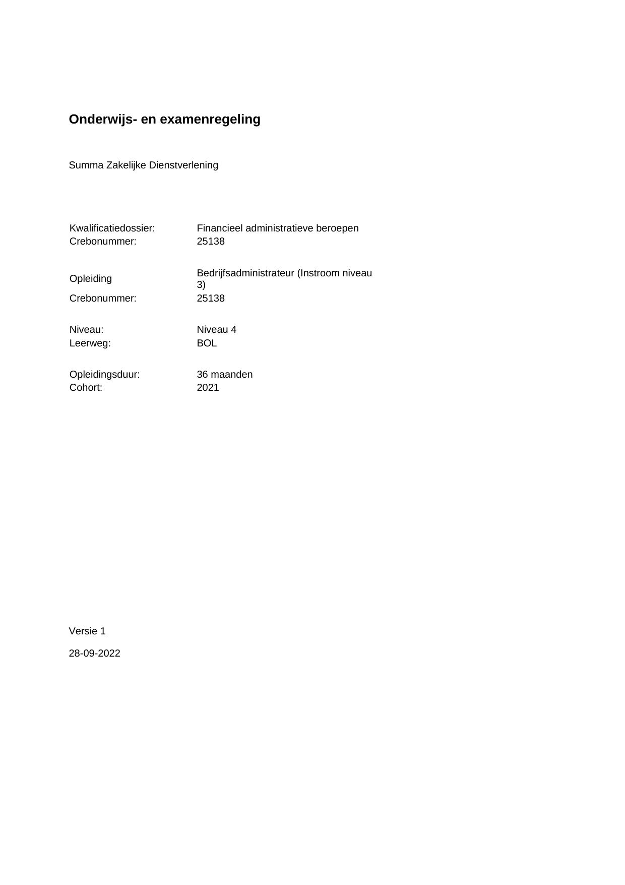 Bedrijfsadministrateur (Instroom niveau 3) 25138BOL36.02 in cohort 2021-2022