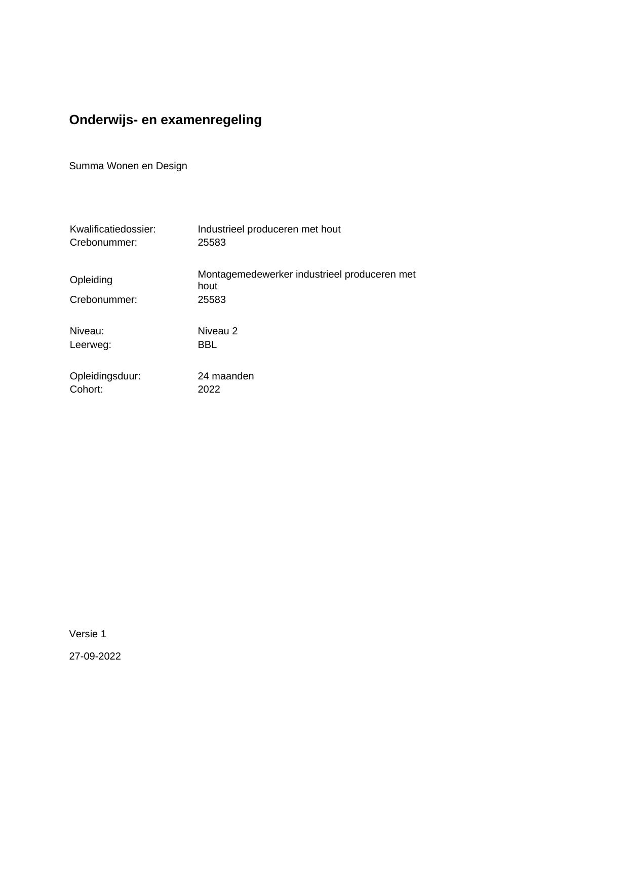 Montagemedewerker industrieel produceren met hout 25583BBL24.01 in cohort 2022-2023