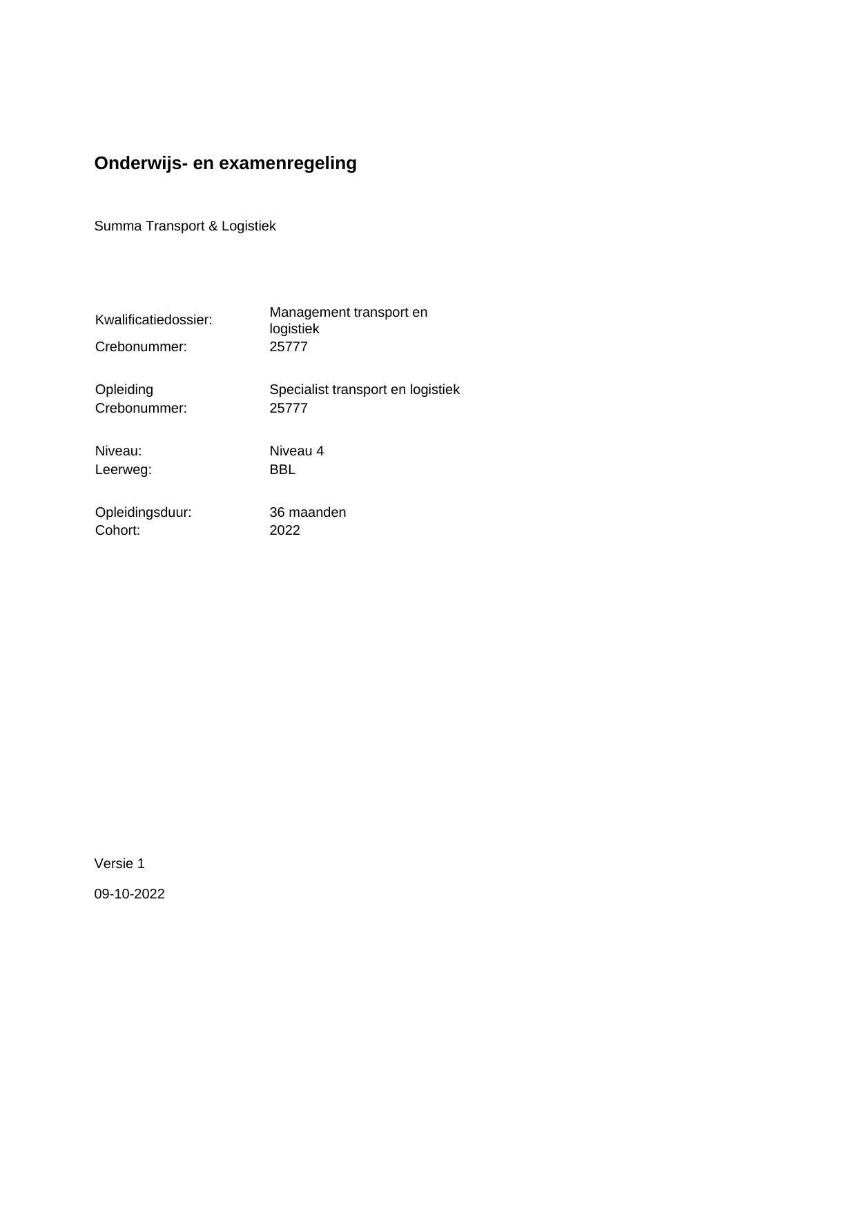 Specialist transport en logistiek 25777BBL36.01 in cohort 2022-2023