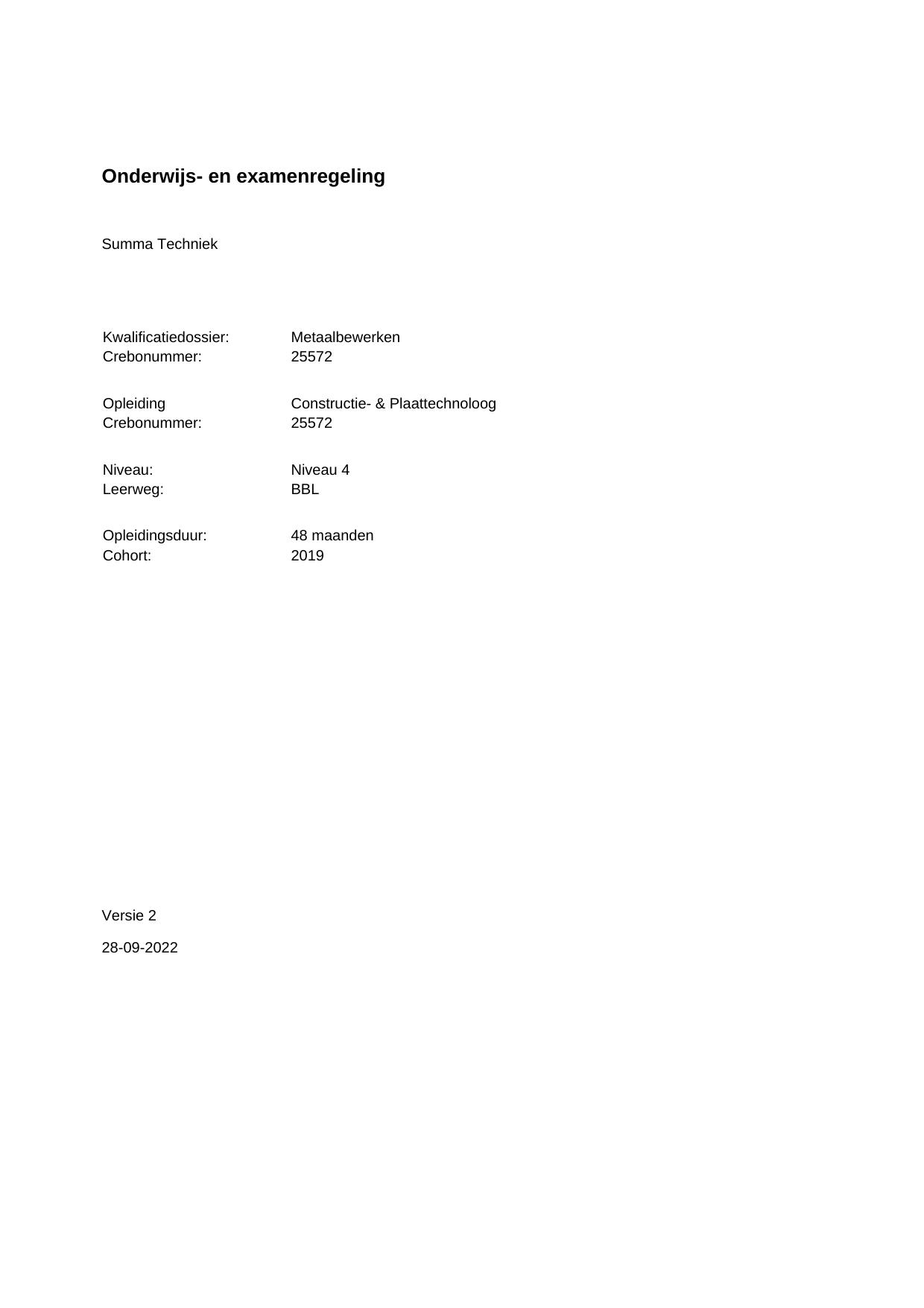 Constructie- & Plaattechnoloog 25572BBL48.01 in cohort 2019-2020