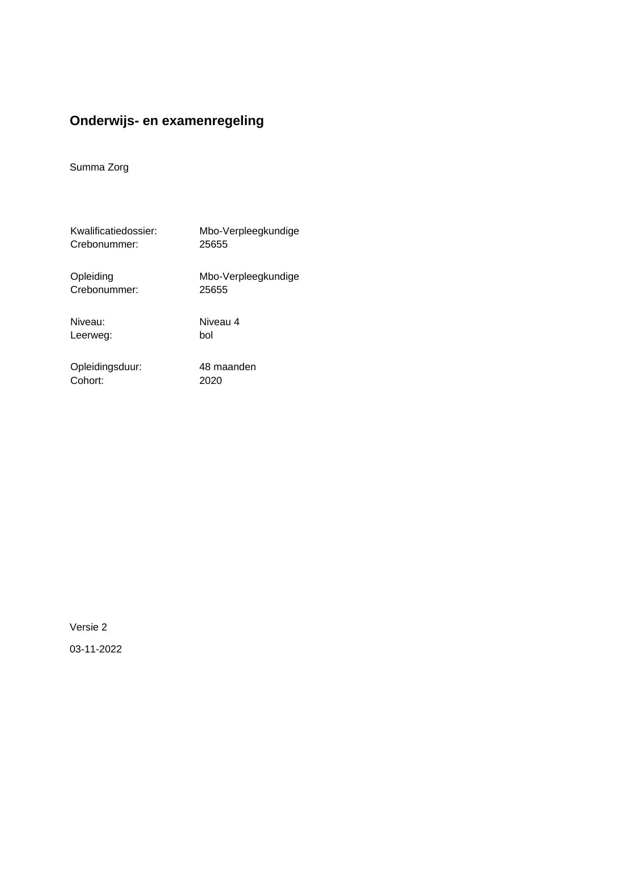 Mbo-Verpleegkundige 25655BOL48.01 in cohort 2021-2022