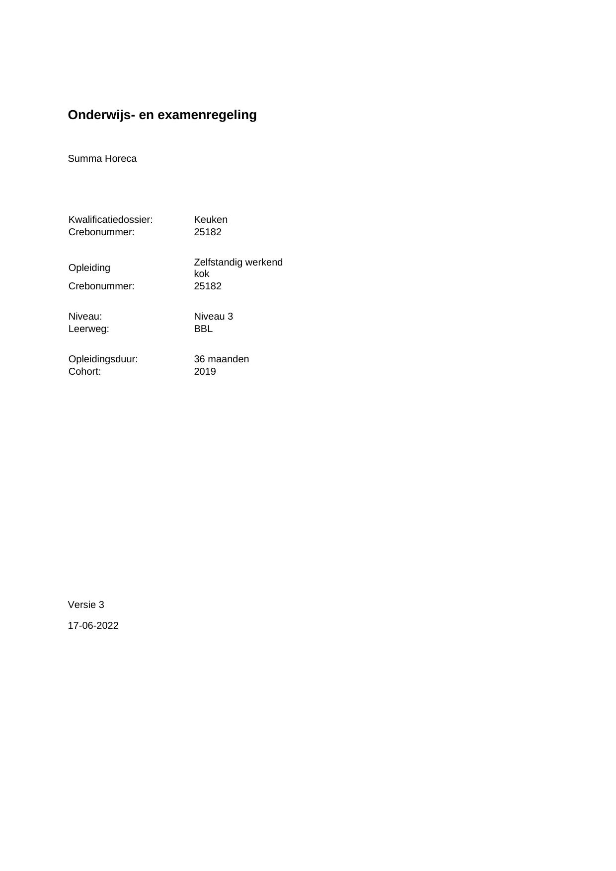 Zelfstandig werkend kok 25182BOL36.01 in cohort 2019-2020