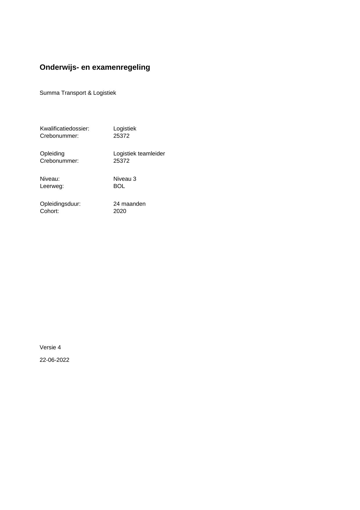 Logistiek teamleider 25372BOL24.01 in cohort 2020-2021