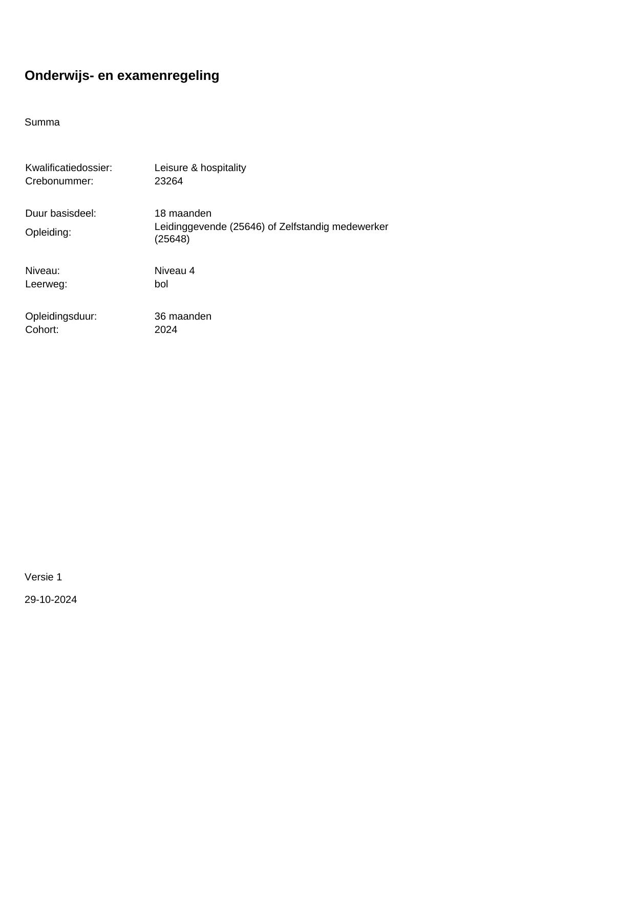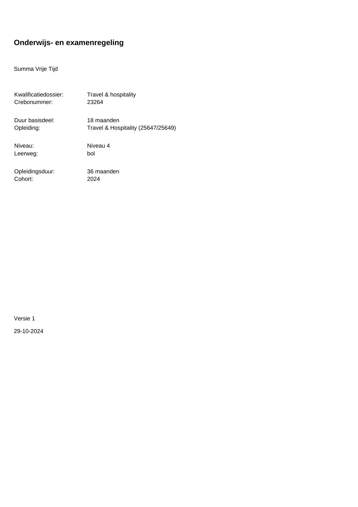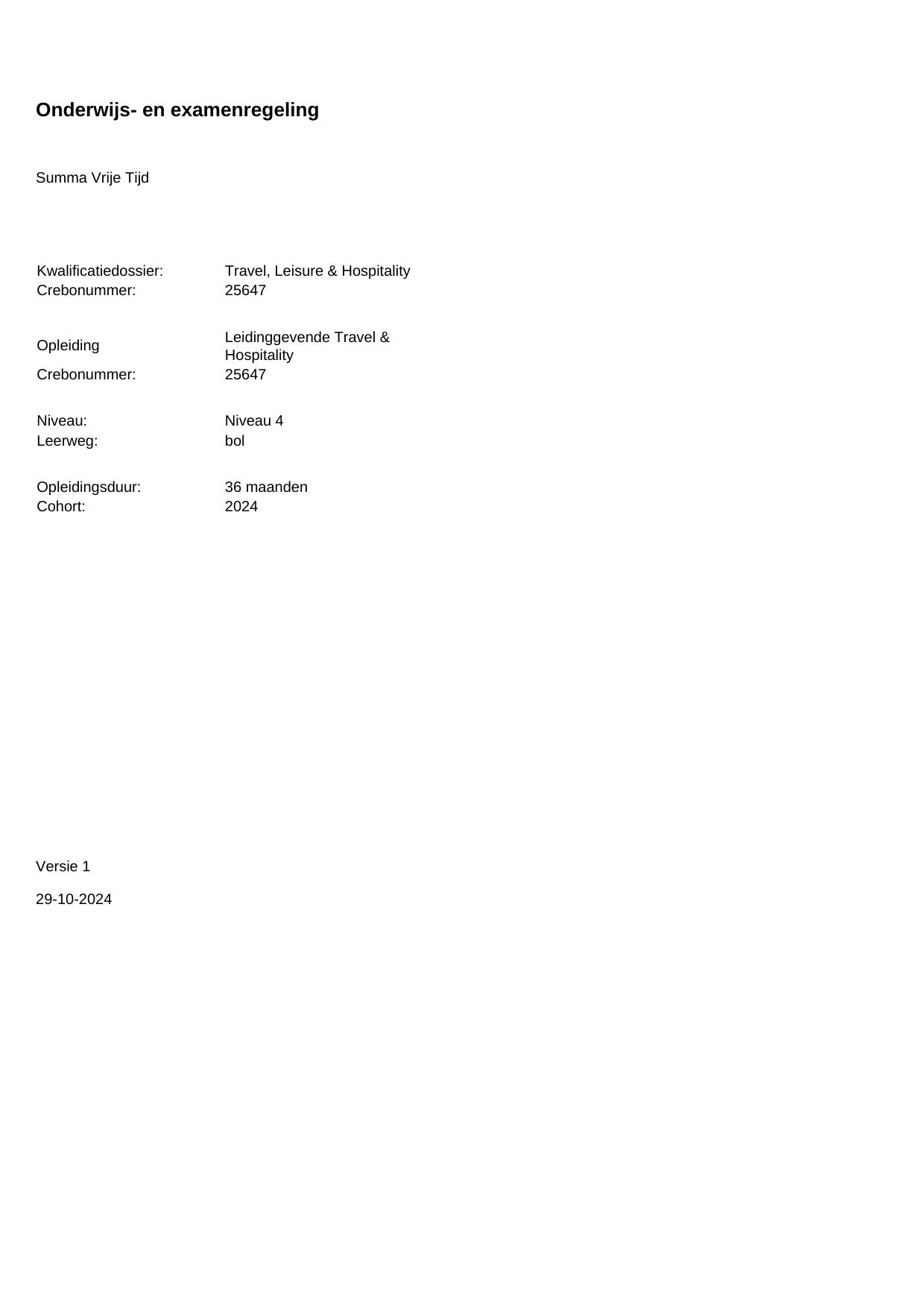 Leidinggevende travel & hospitality 25647BBL36.01 in cohort 2022-2023