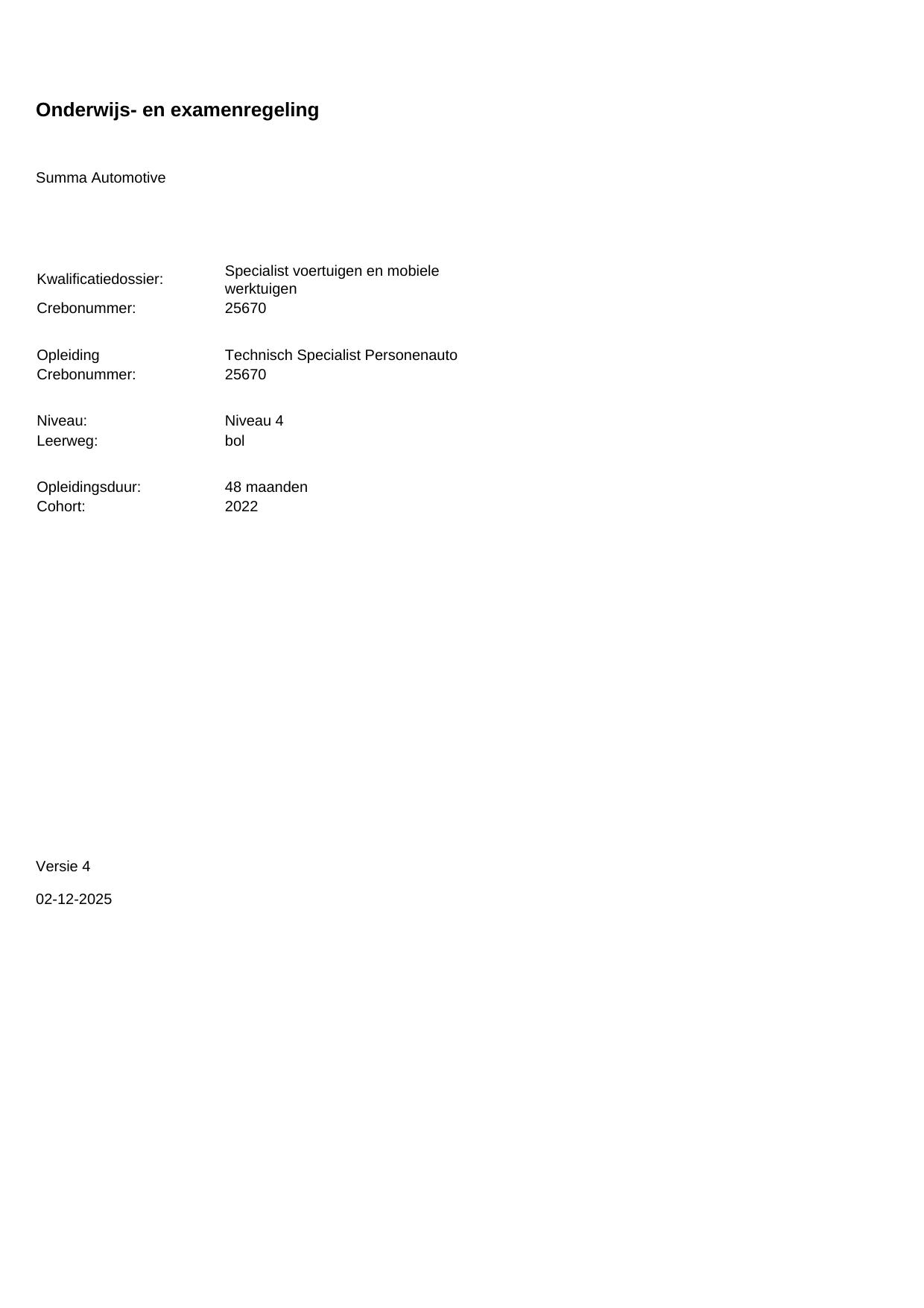 Technisch specialist voertuigen (personenauto's) 25670BOL48.01 in cohort 2022-2023