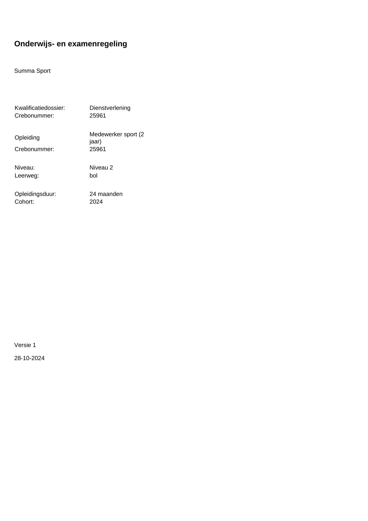 Medewerker sport (2 jaar) 25961BOL24.01 in cohort 2024-2025