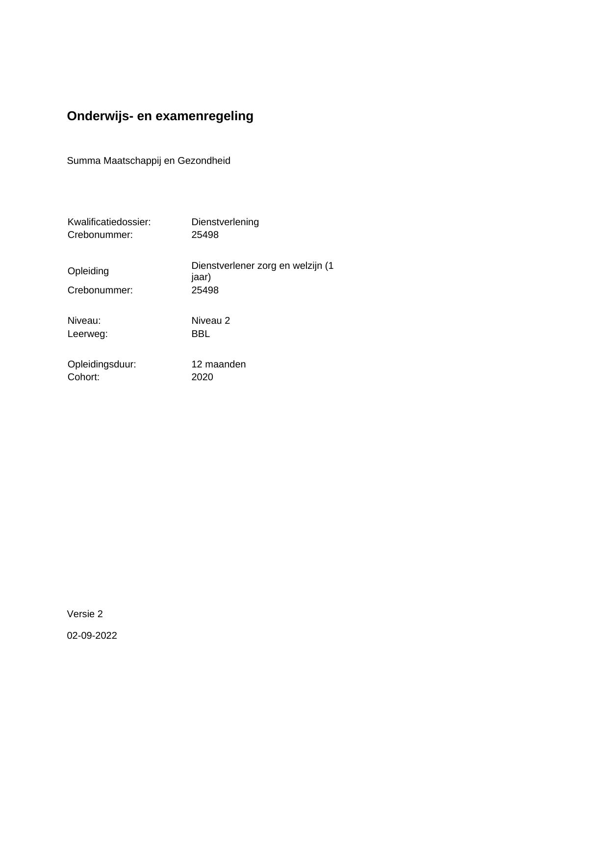 Dienstverlener zorg en welzijn (1 jaar) 25498BBL12.03 in cohort 2020-2021