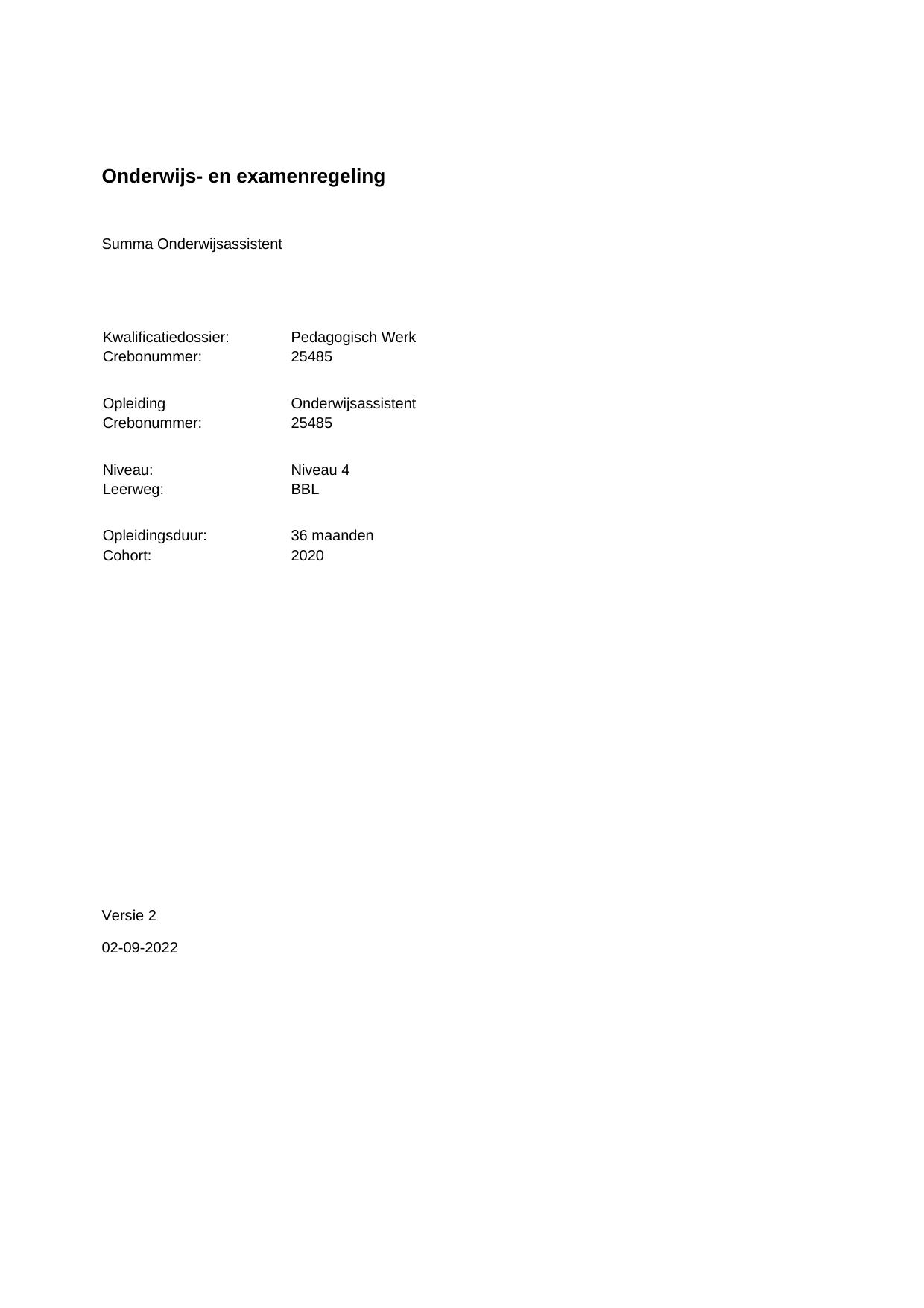 Onderwijsassistent 25485BBL36.01 in cohort 2020-2021