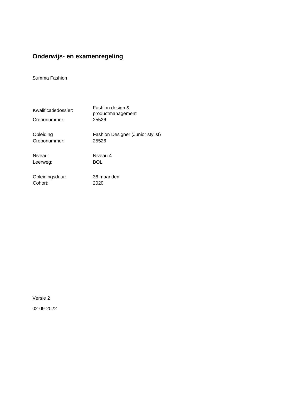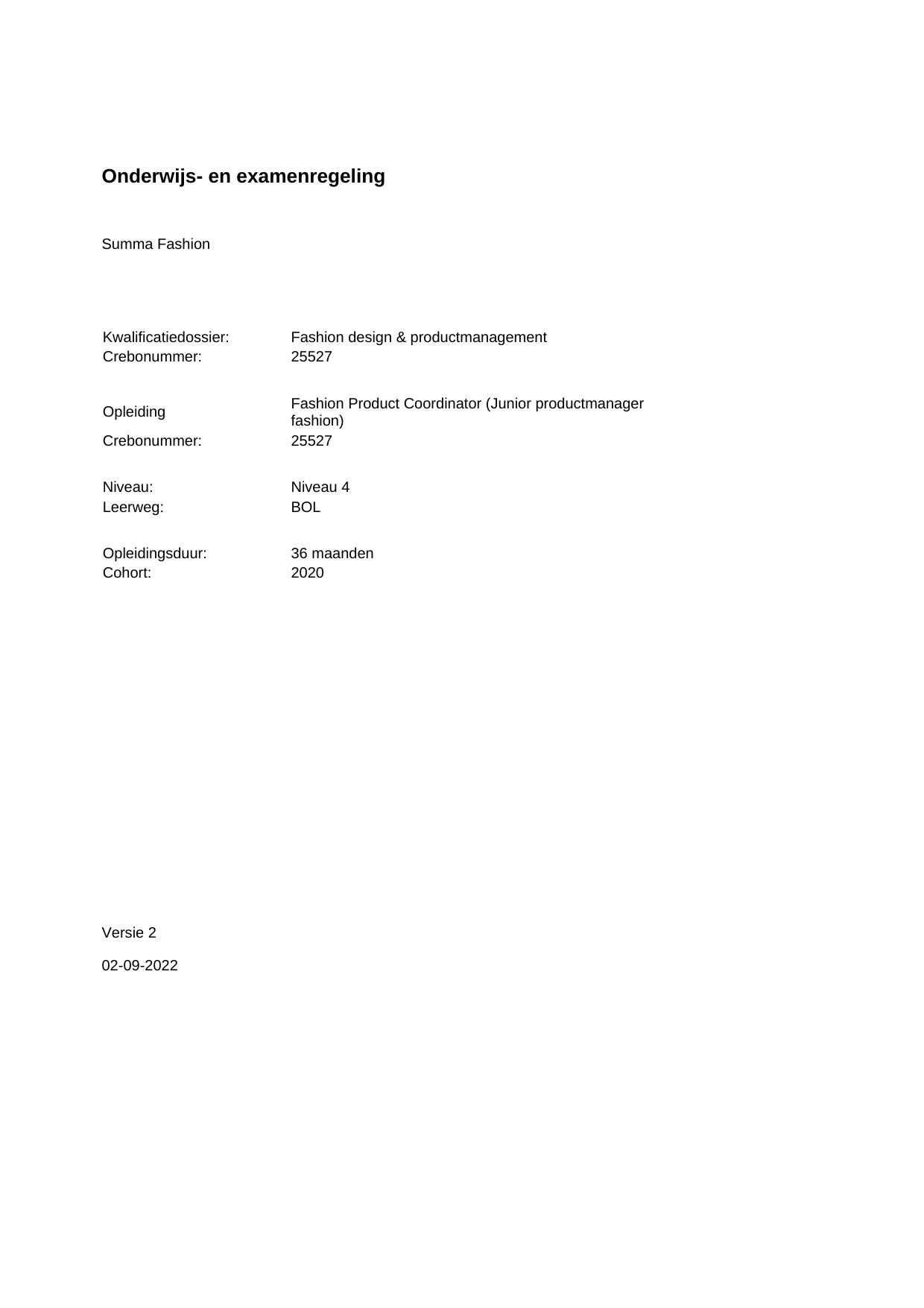 Summa International Fashion (Engelstalige opleiding) 23207BOL36.01 in cohort 2019-2020