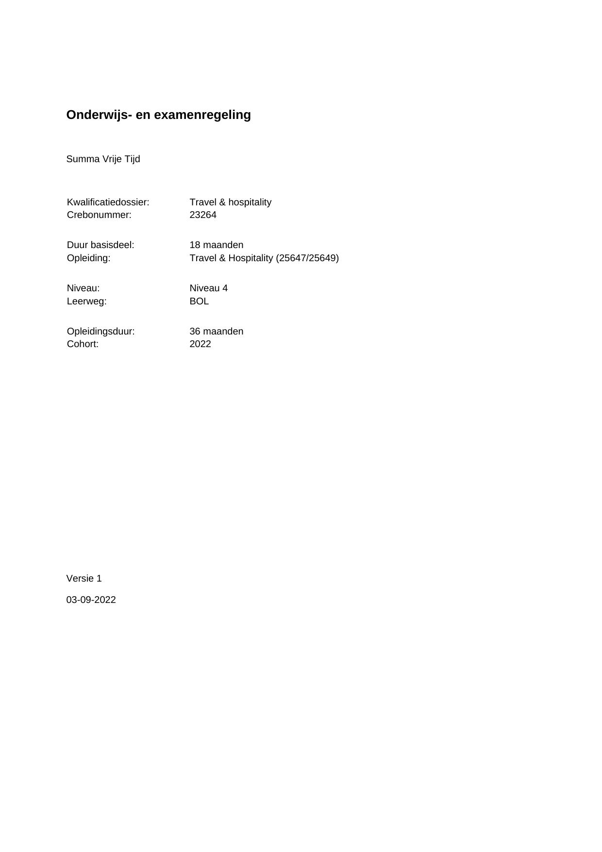 Travel & hospitality 23264BOL36.02 in cohort 2022-2023