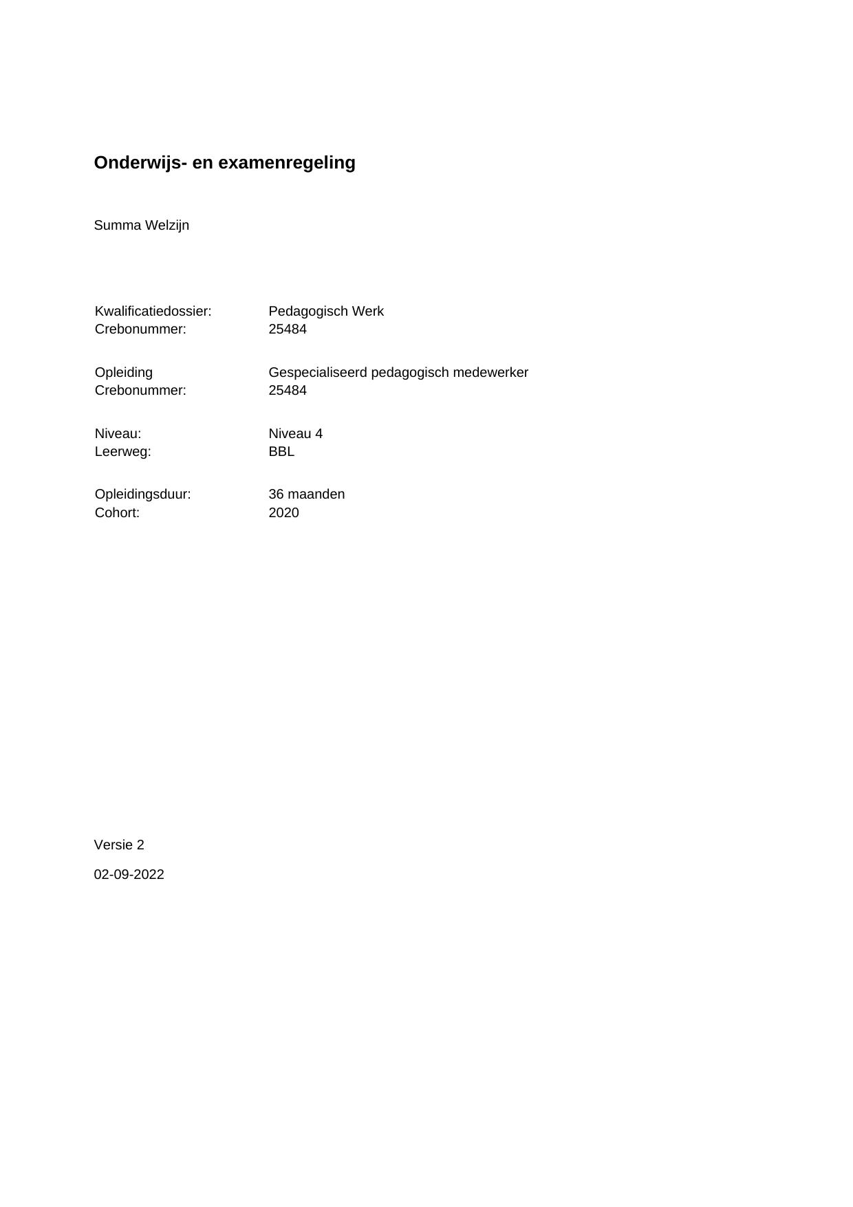 Gespecialiseerd pedagogisch medewerker 25484BBL36.01 in cohort 2020-2021