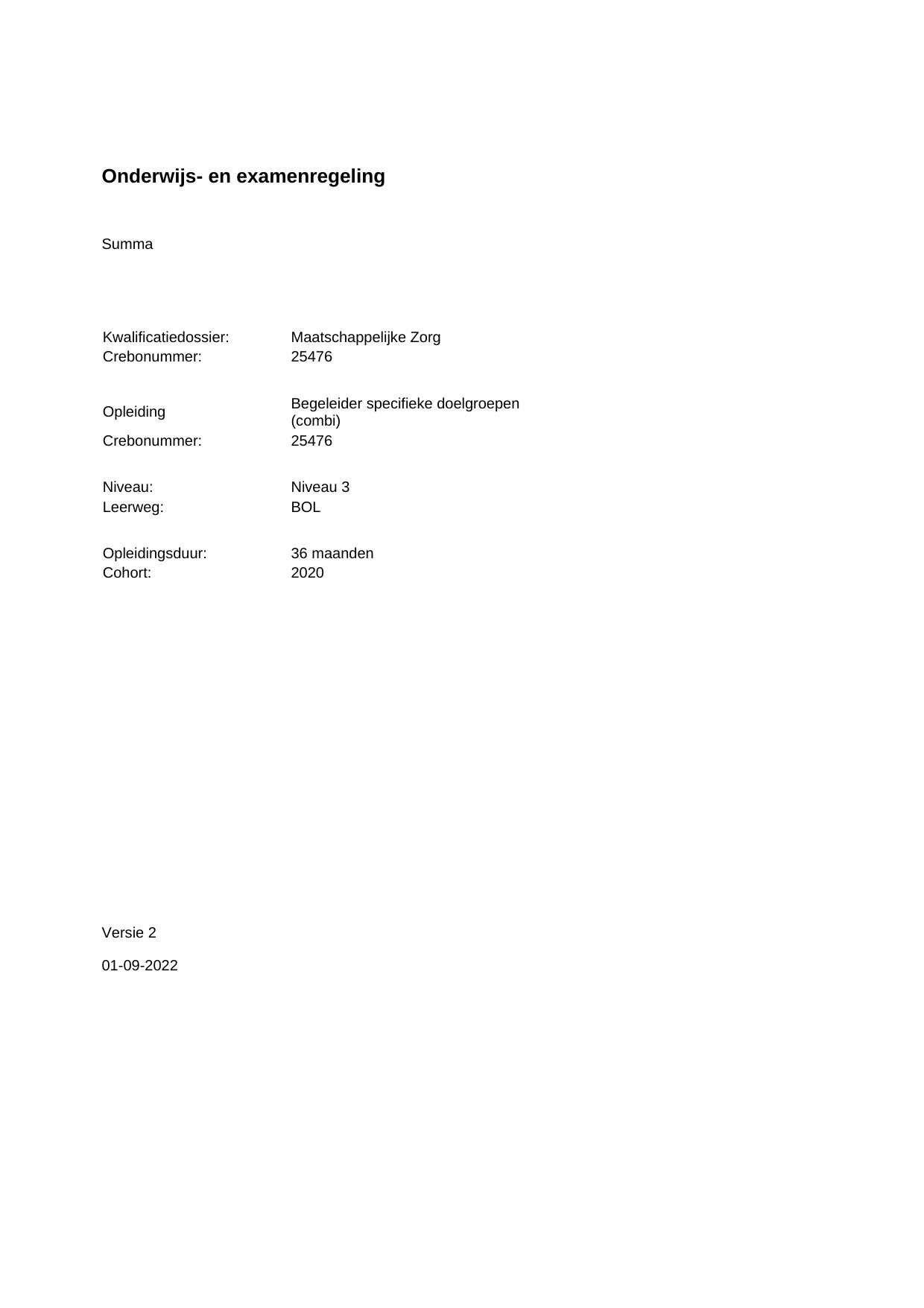 Begeleider specifieke doelgroepen (combi) 25476BOL36.03 in cohort 2020-2021