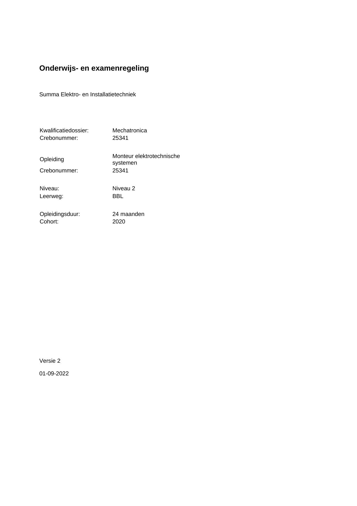 Monteur elektrotechnische systemen 25341BBL24.01 in cohort 2020-2021