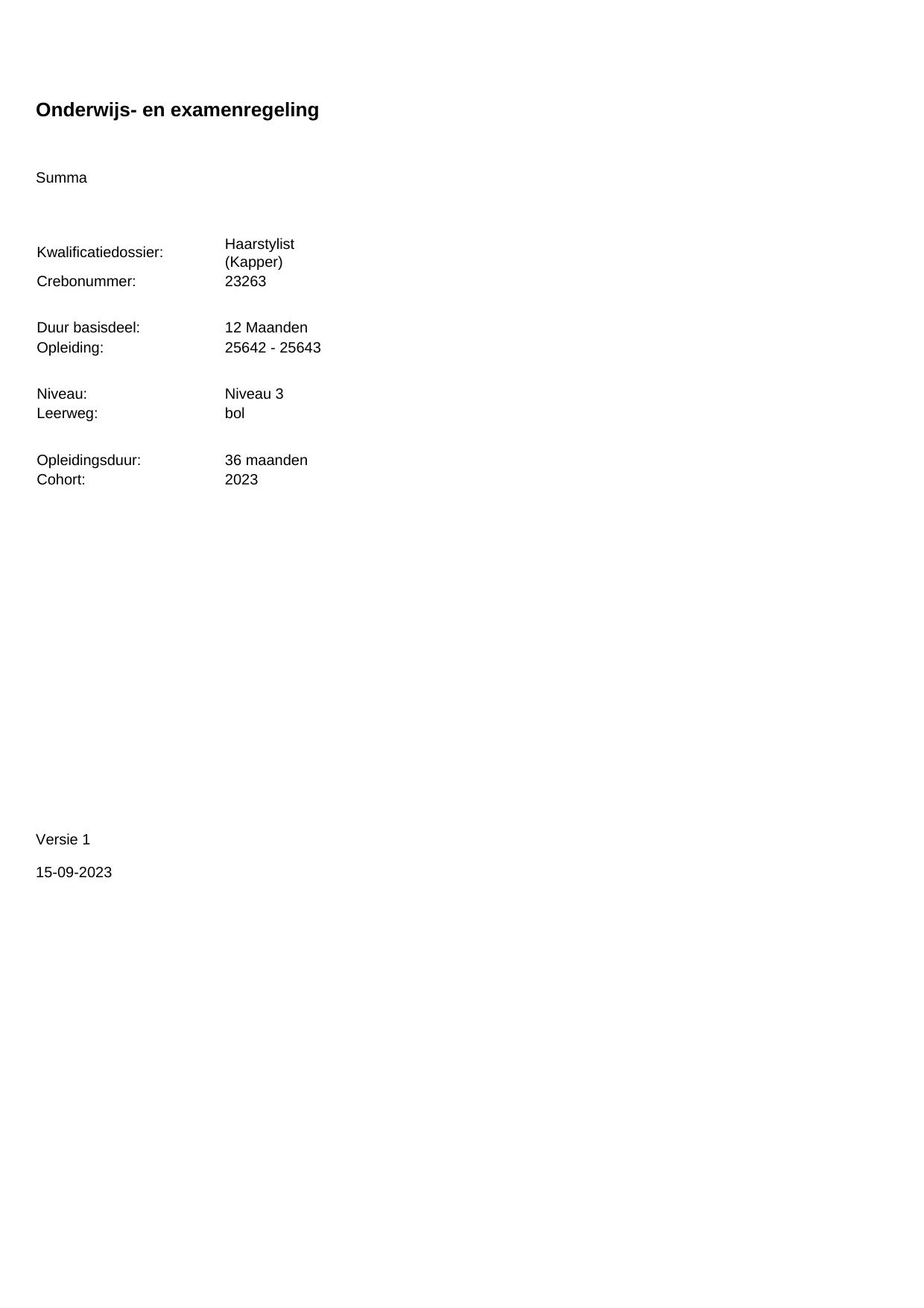 Haarstylist (Kapper) 23263BOL36.01 in cohort 2023-2024