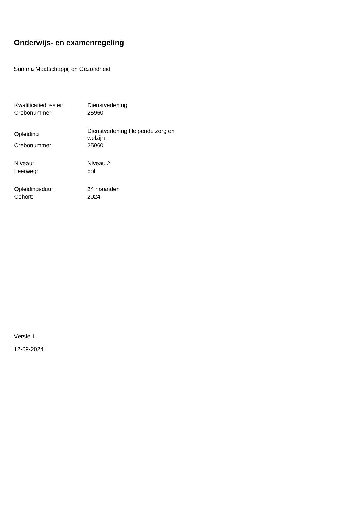 Helpende zorg en welzijn 25960BOL24.01 in cohort 2024-2025