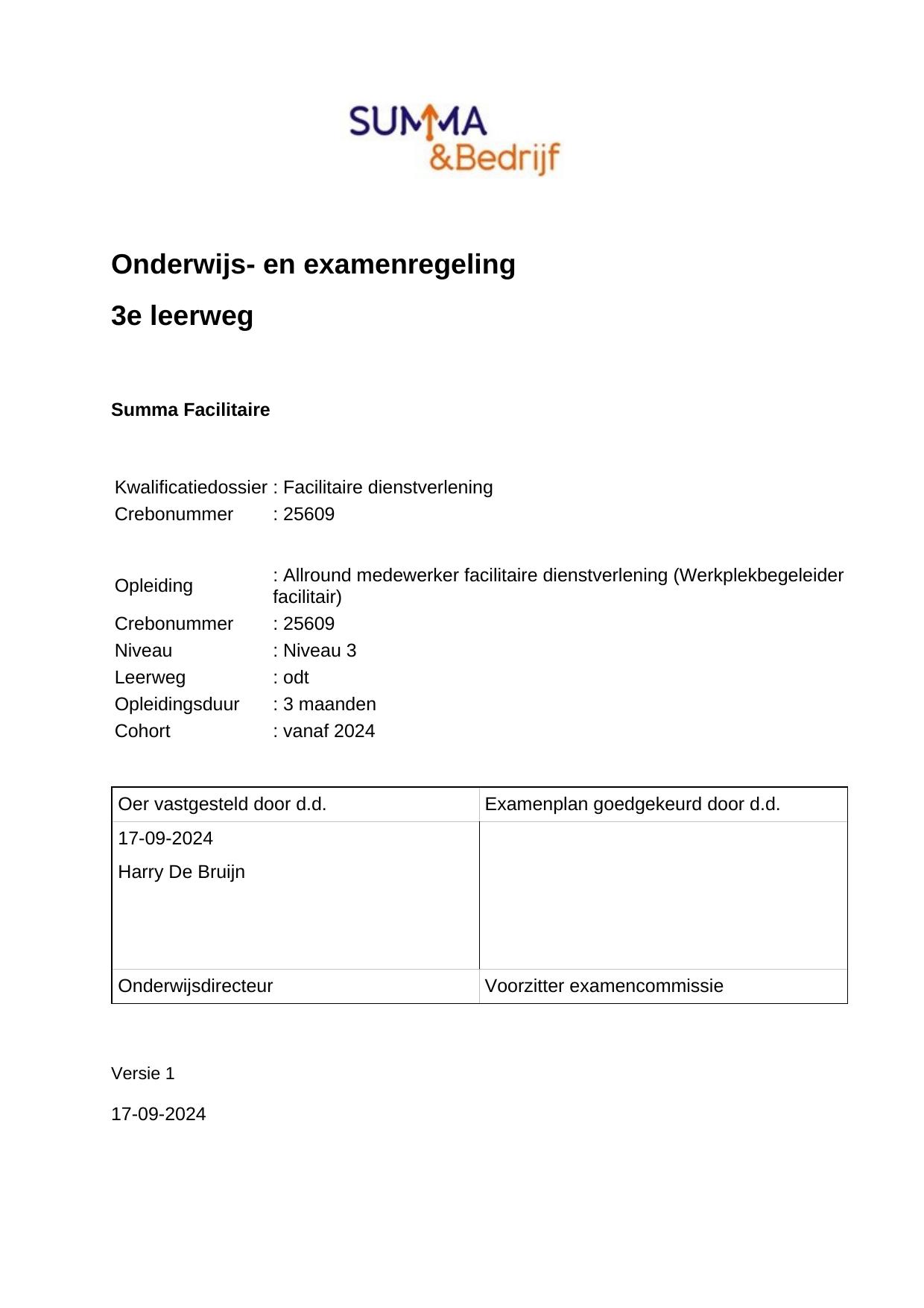 Werkplekbegeleider facilitair 25609ODT03.01 in cohort 2024-2025