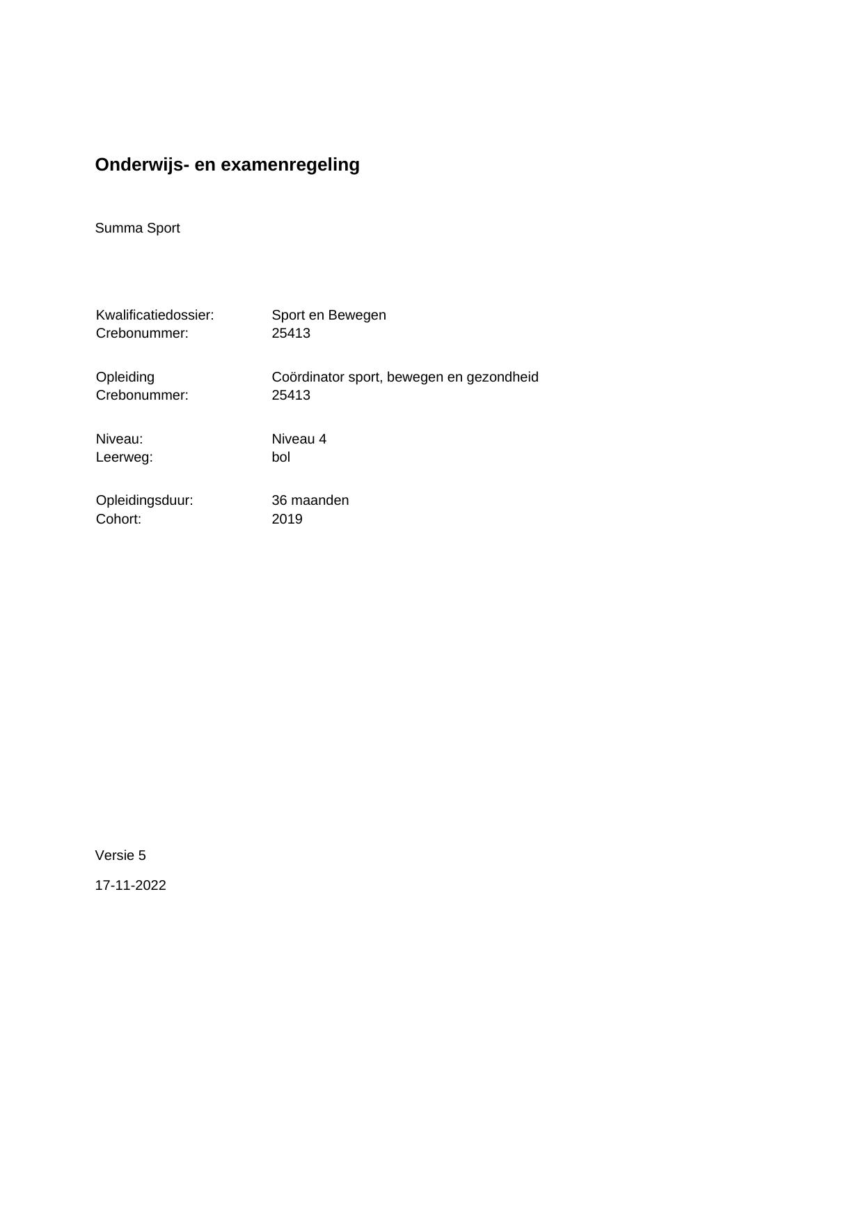 Coördinator sport, bewegen en gezondheid 25413BOL36.01 in cohort 2019-2020