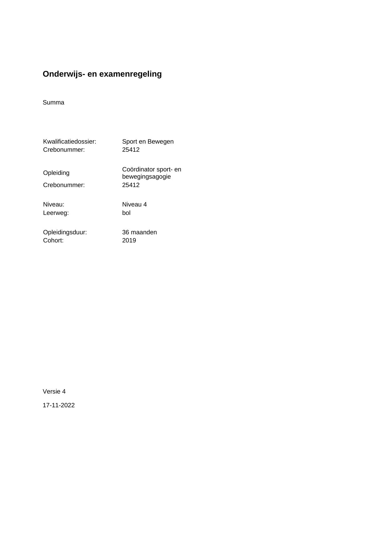 Coördinator sport- en bewegingsagogie 25412BOL36.01 in cohort 2019-2020