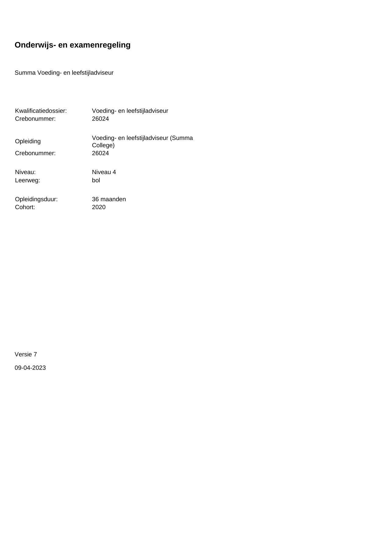 Voeding- en leefstijladviseur (Summa College) 26024BOL36.01 in cohort 2020-2021