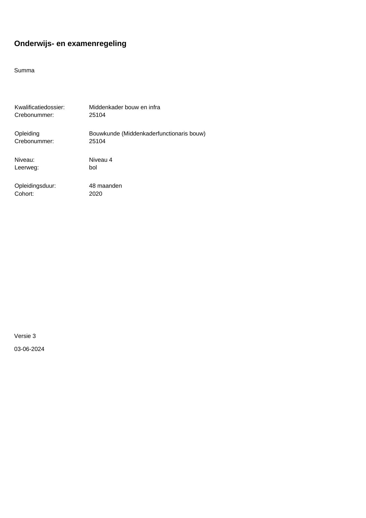 Bouwkunde (Middenkaderfunctionaris bouw) 25104BOL48.01 in cohort 2020-2021