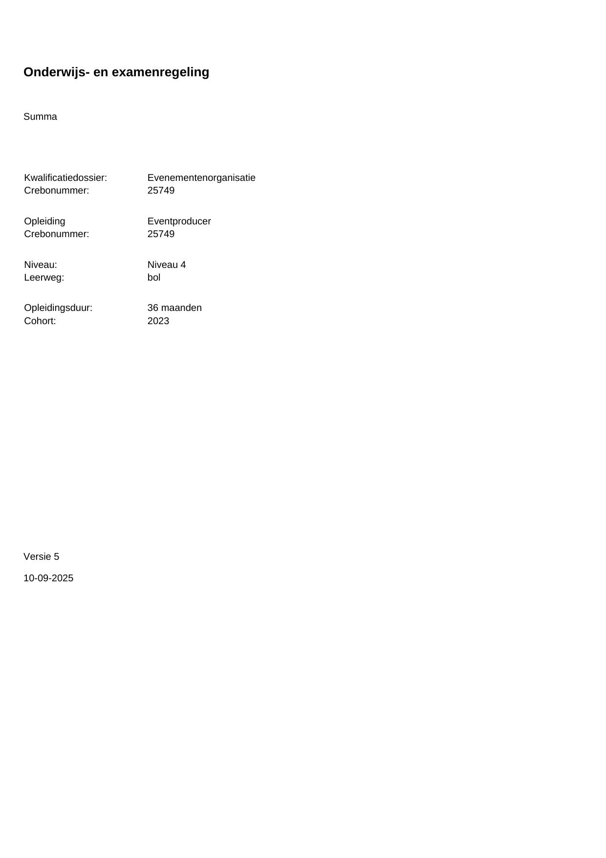 Medewerker evenementenorganisatie 25749BOL36.01 in cohort 2023-2024