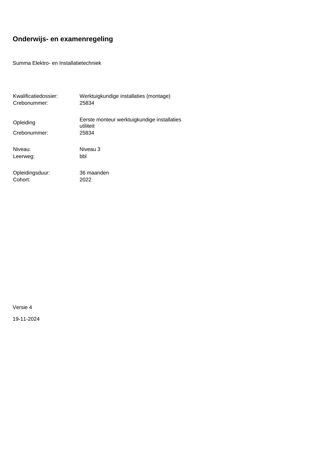 Eerste monteur werktuigkundige installaties utiliteit 25834BBL36.01 in cohort 2022-2023