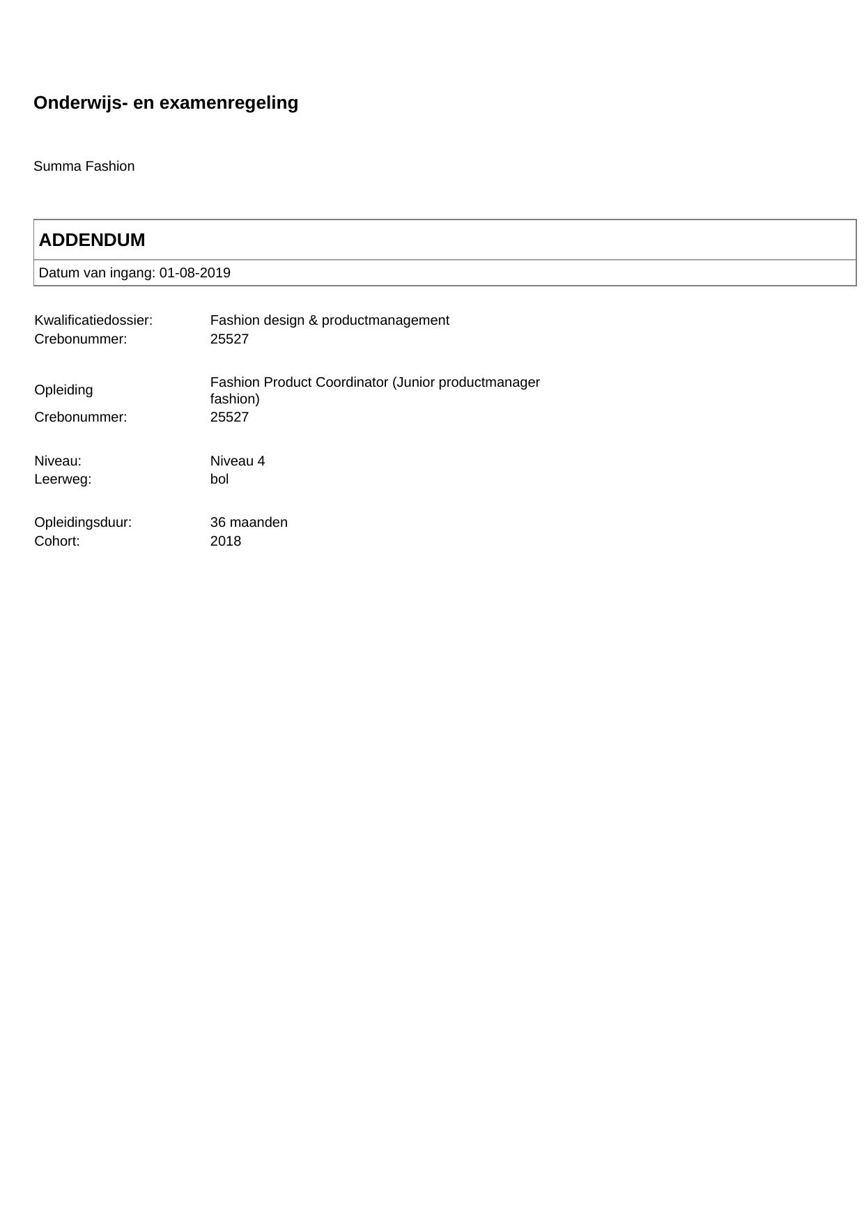 Fashion Product Coordinator (Junior productmanager fashion) 25527BOL36.01 in cohort 2018-2019