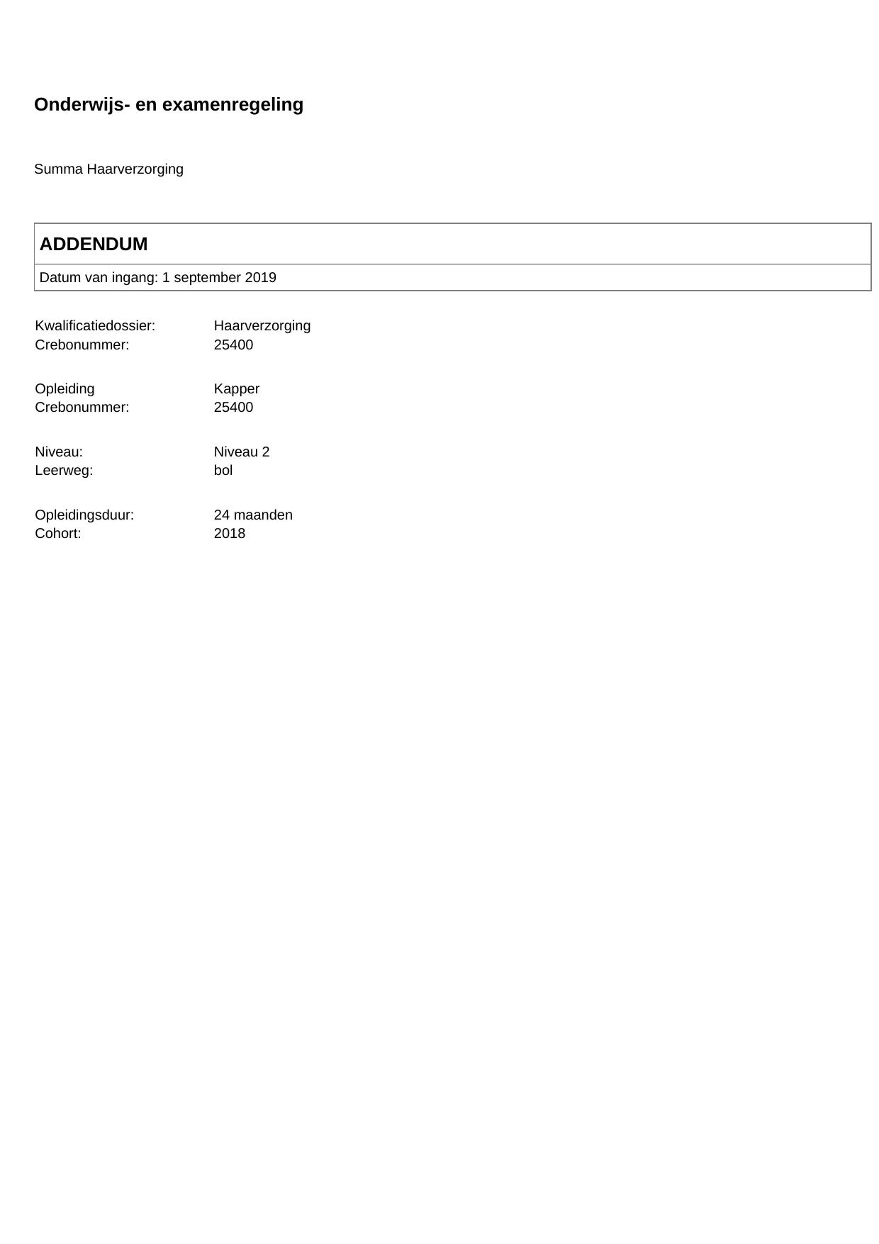 Kapper 25400BOL24.01 in cohort 2018-2019