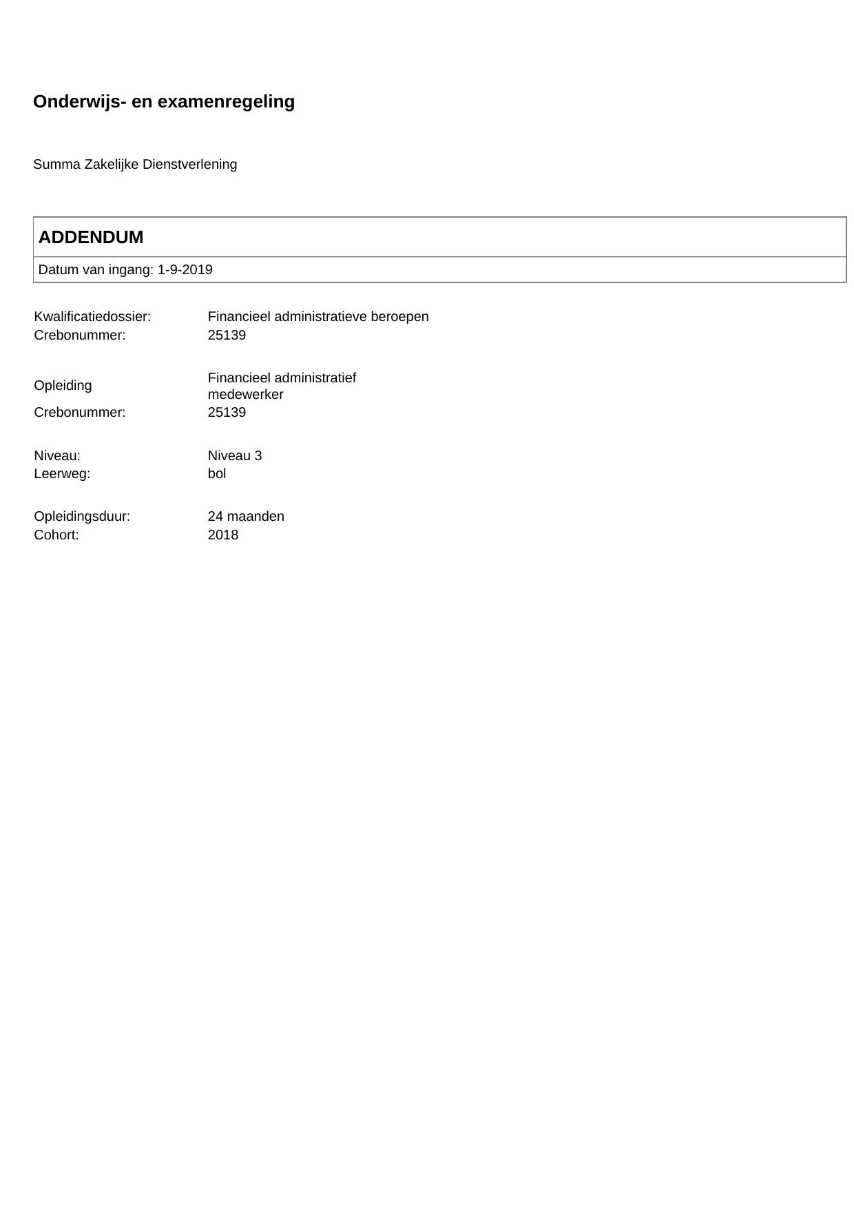Financieel administratief medewerker 25139BOL24.01 in cohort 2018-2019