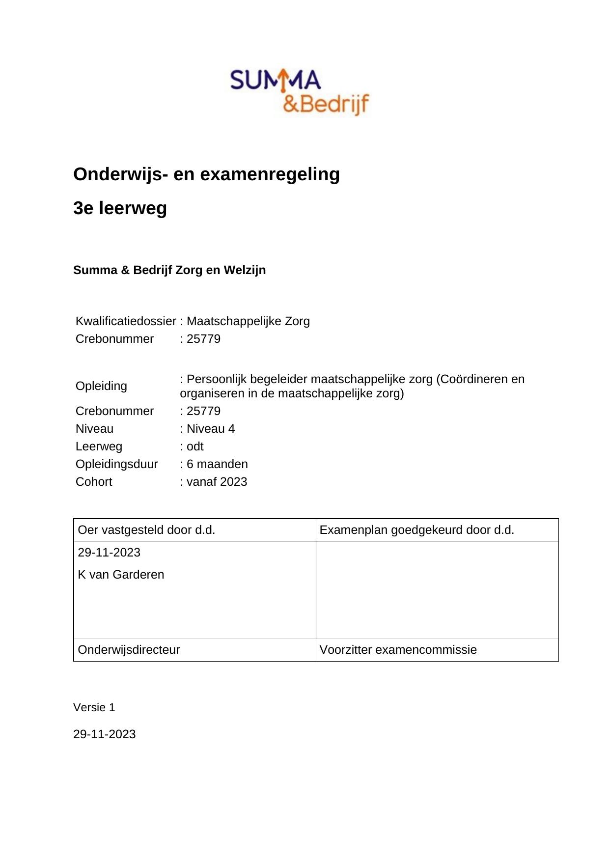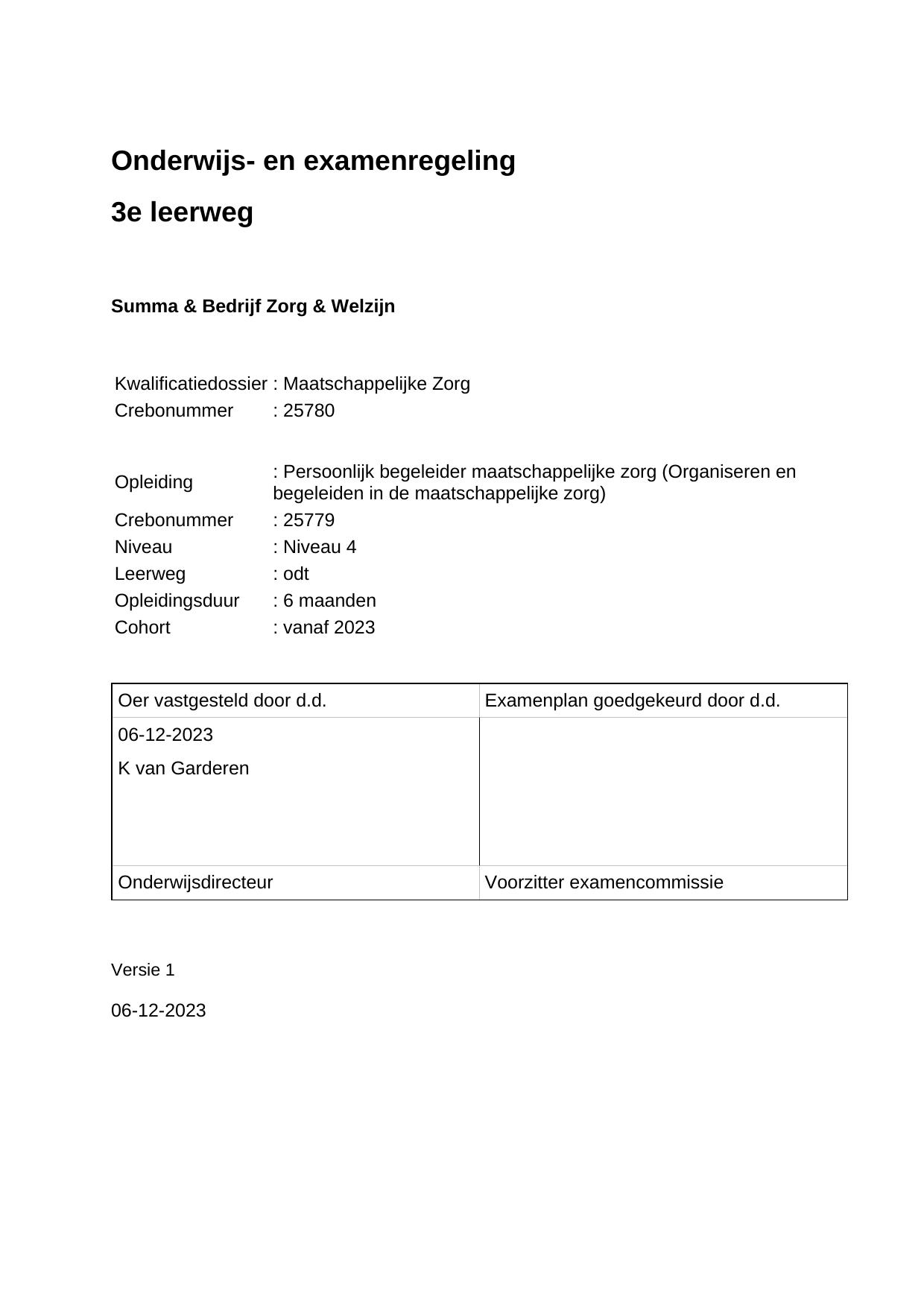 Organiseren en begeleiden in de maatschappelijke zorg 25779ODT06.03 in cohort 2023-2024