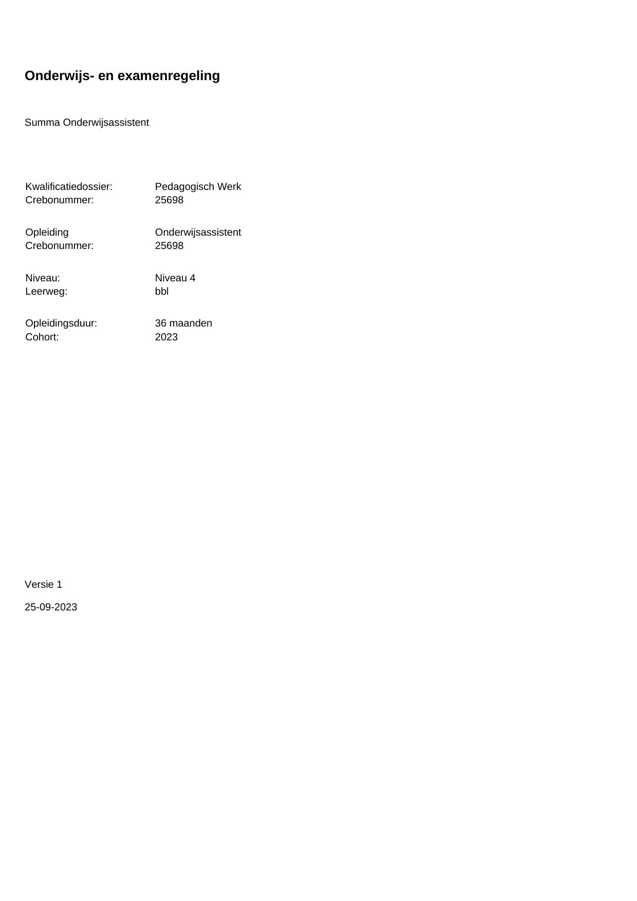 Onderwijsassistent 25698BBL36.01 in cohort 2023-2024