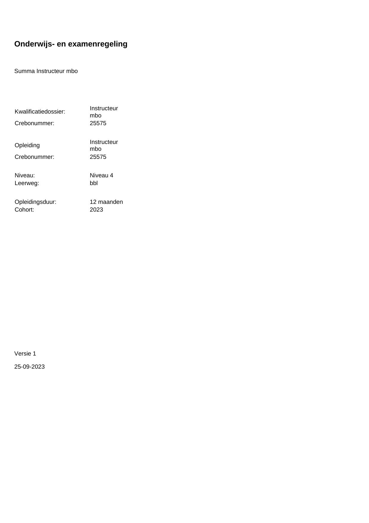 Instructeur mbo (Instructeur mbo) 25575OVO12.01 in cohort 2023-2024