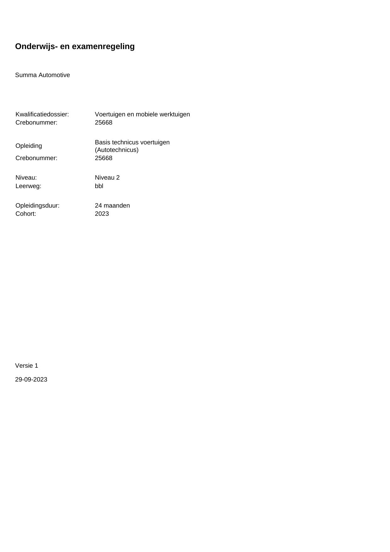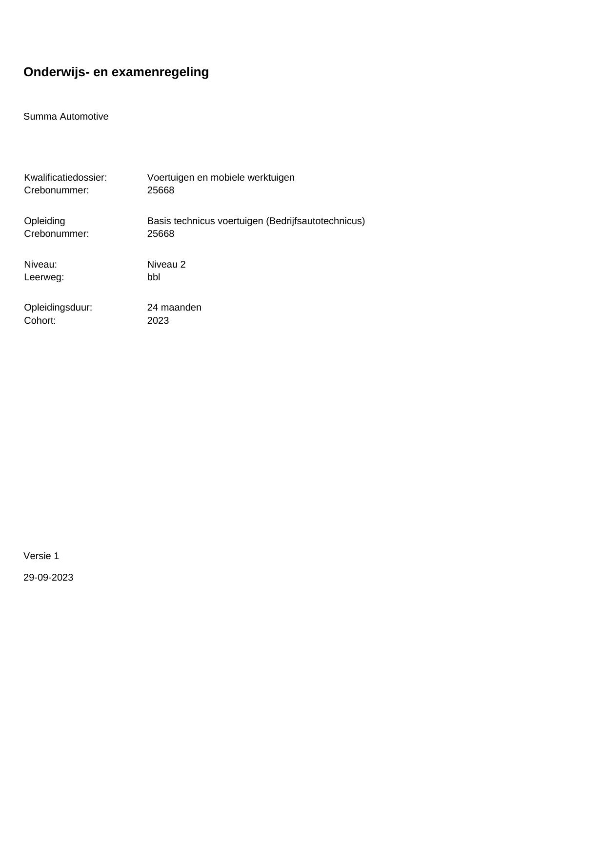 Basis technicus voertuigen (Autotechnicus) 25668BBL24.01 in cohort 2023-2024