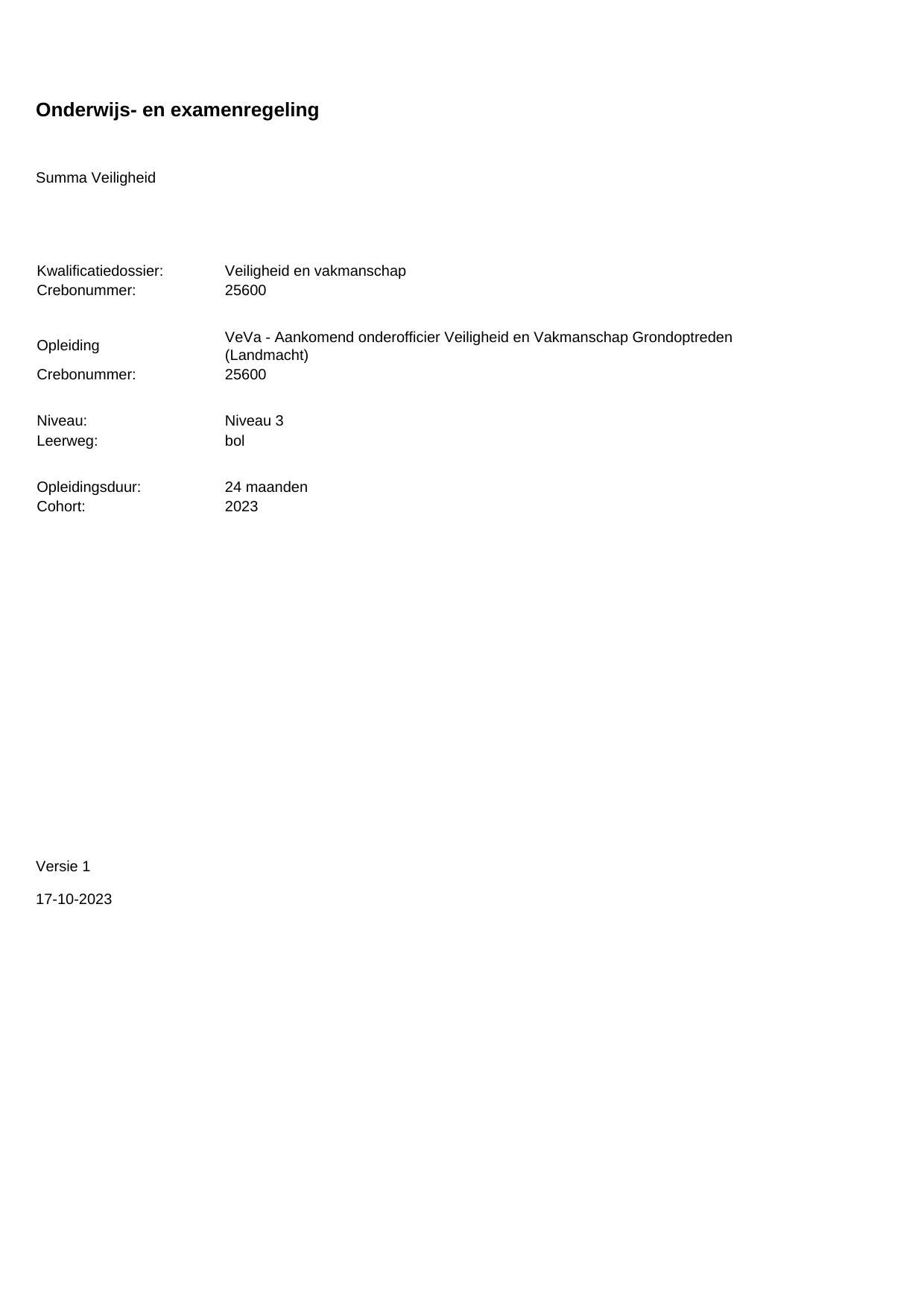 VeVa - Aankomend onderofficier Veiligheid en Vakmanschap Grondoptreden 25600BOL24.01 in cohort 2023-2024