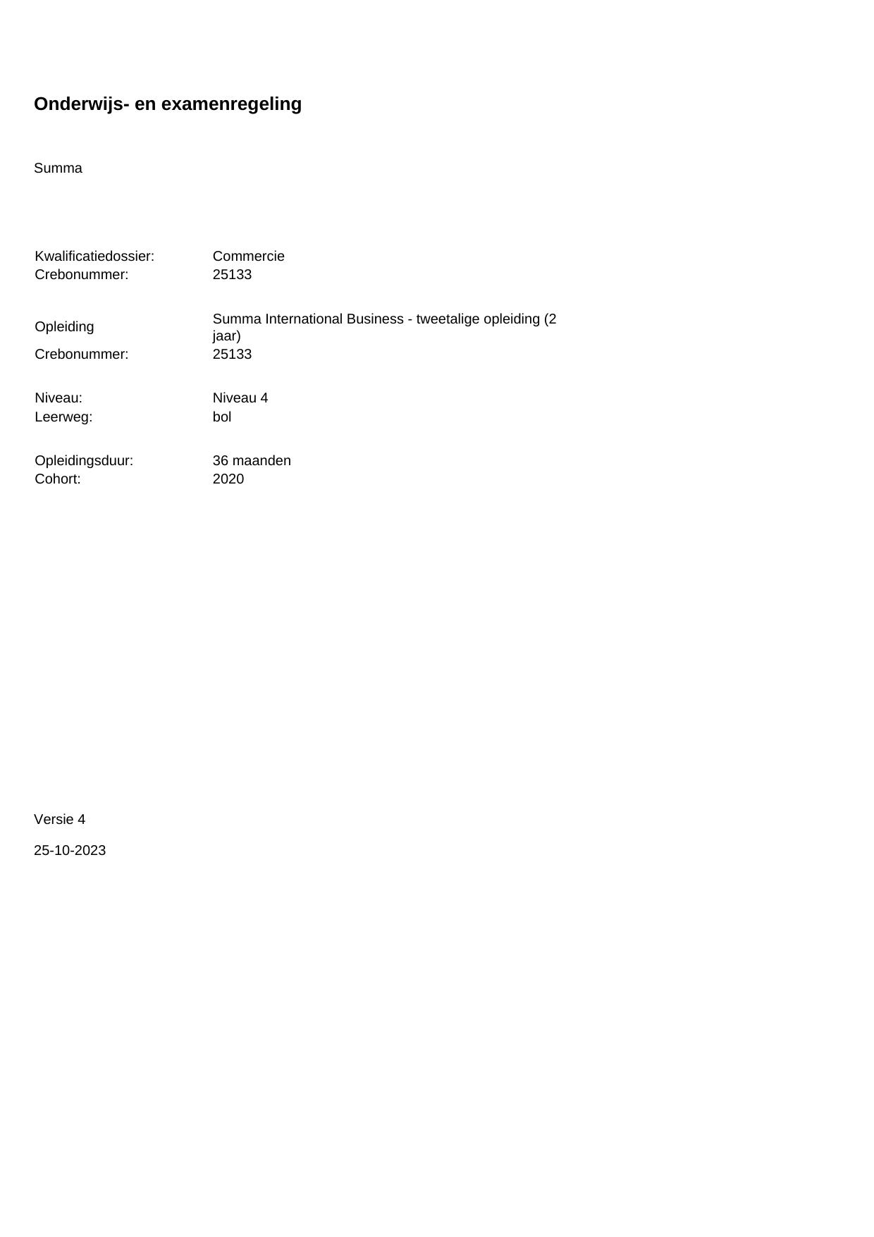 Summa International Business - tweetalige opleiding (2 jaar) 25133BOL36.03 in cohort 2020-2021