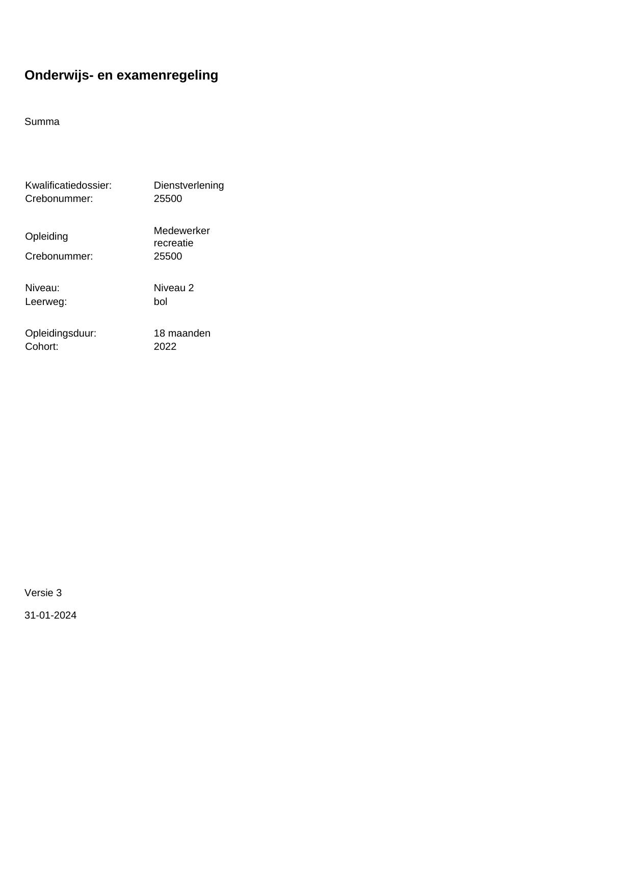 Medewerker recreatie 25500BOL18.01 in cohort 2022-2023