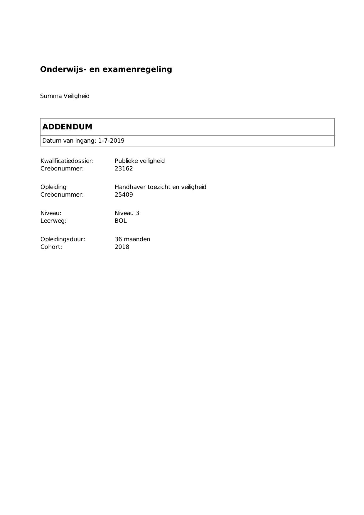 Handhaver toezicht en veiligheid 25409BOL36.01 in cohort 2018-2019
