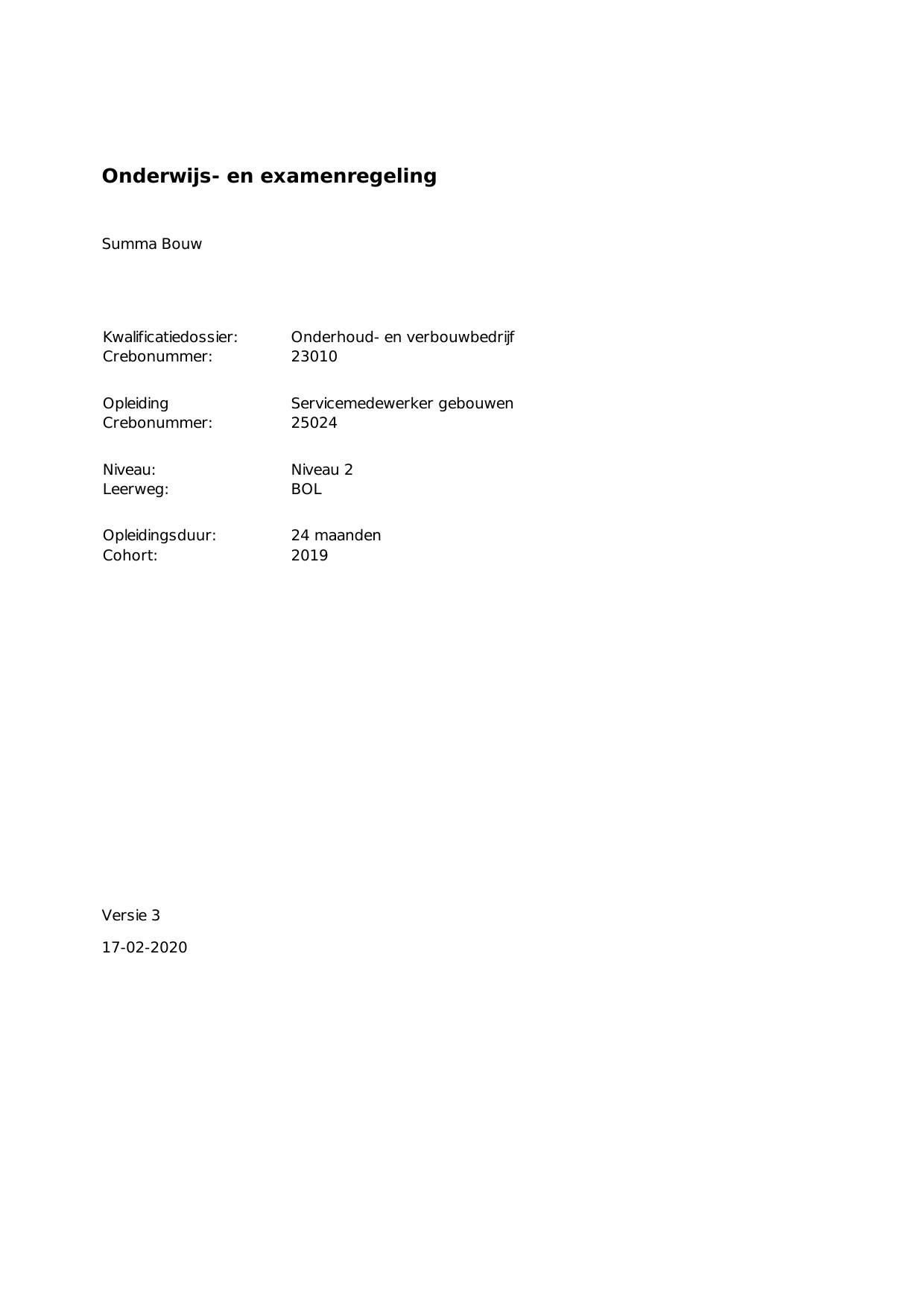 Servicemedewerker gebouwen 25024BOL24.02 in cohort 2019-2020