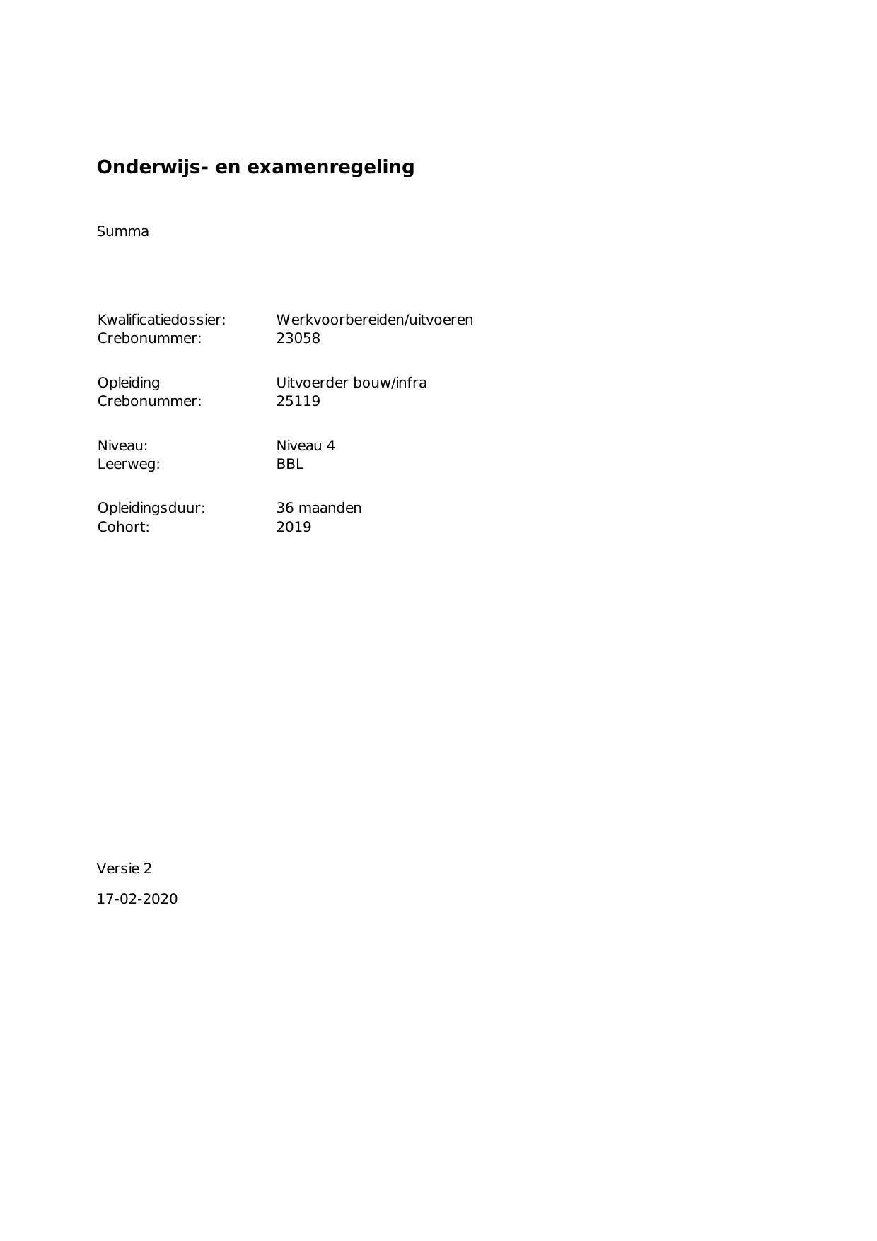 Uitvoerder bouw/infra 25119BBL36.01 in cohort 2019-2020